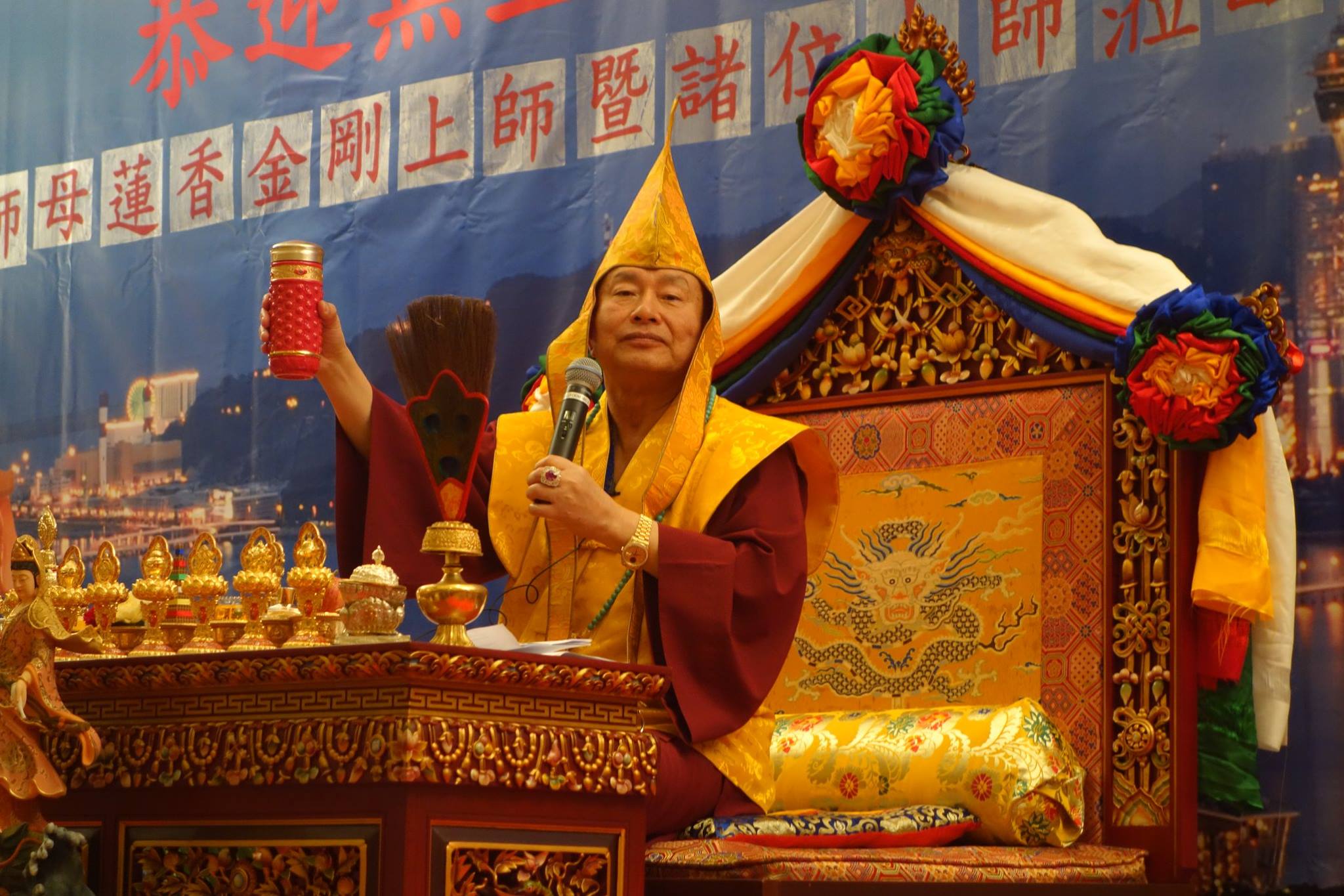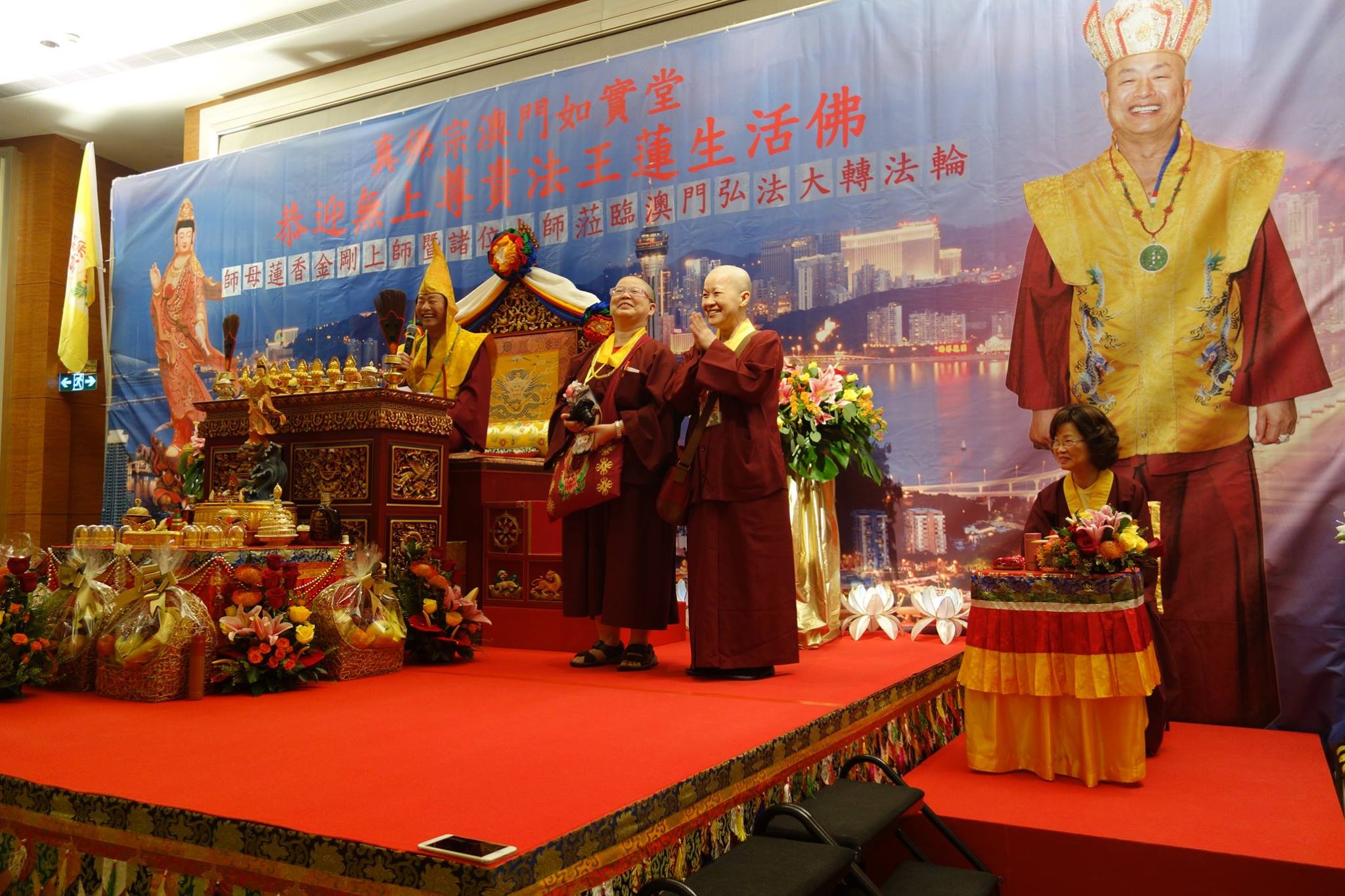 蓮生活佛首先謝謝「如實堂」的講師、堂主,理事們的邀請,以及今天各地前來護持的所有人,大家都是貴賓,而今天也要作「鰲龍觀音」的灌頂!
