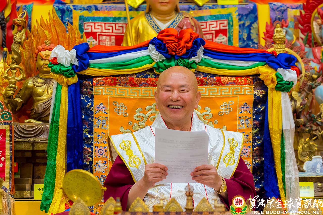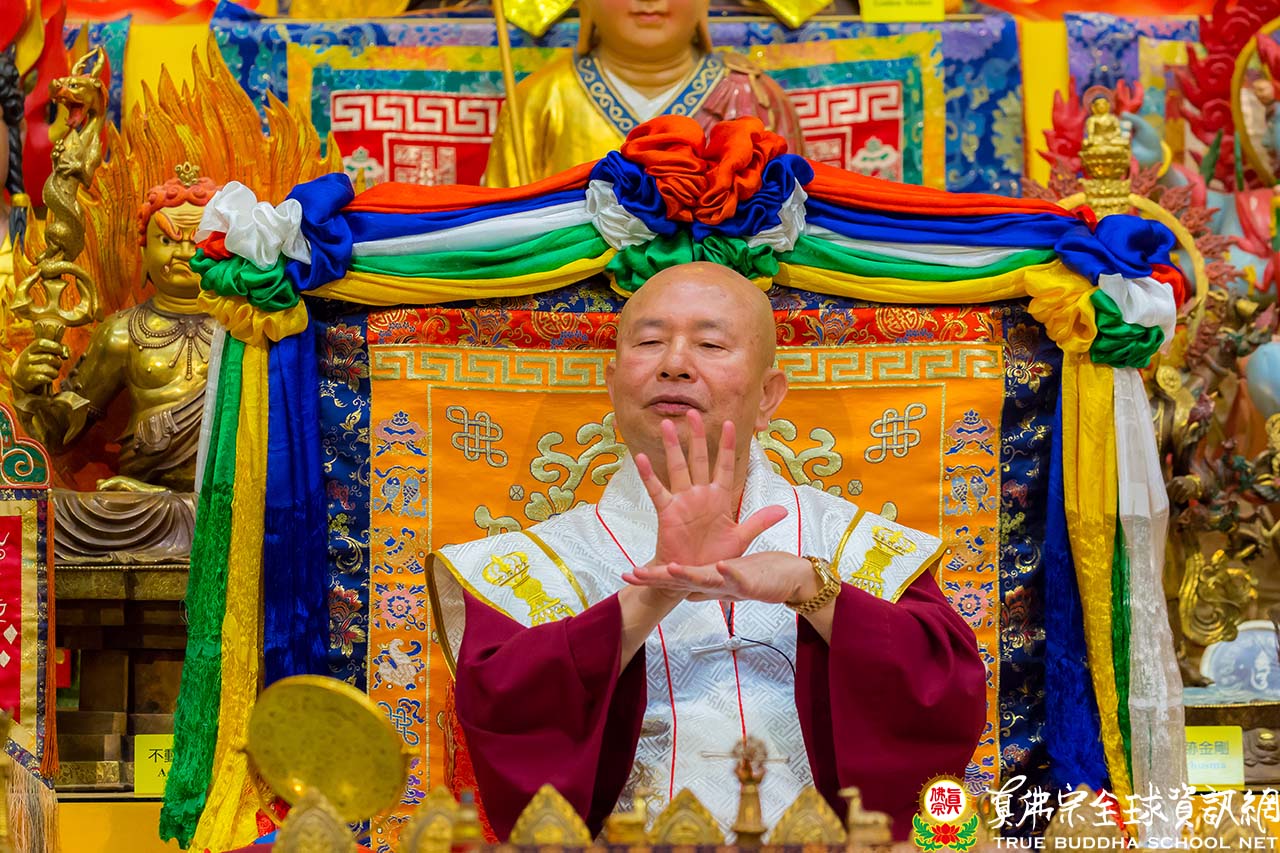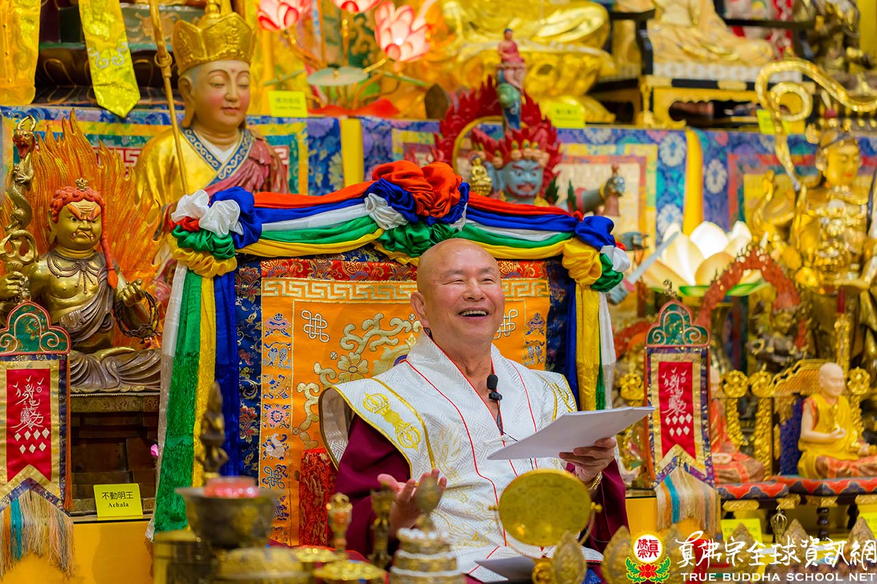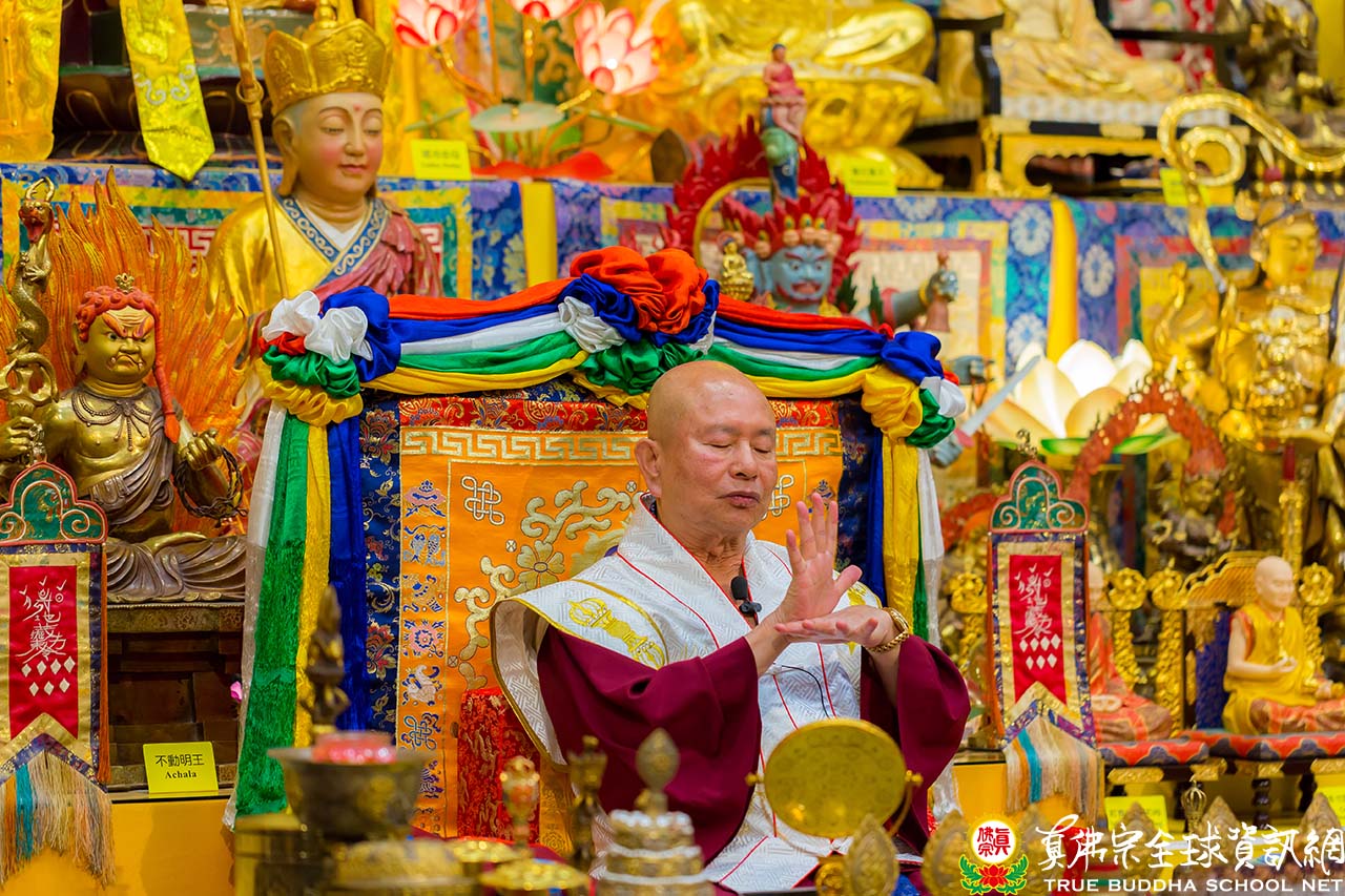 熱烈掌聲中,師尊坐上了法王座,帶領現場與網路上的所有弟子們,同修了一壇莊嚴肅穆的蓮花童子本尊法。