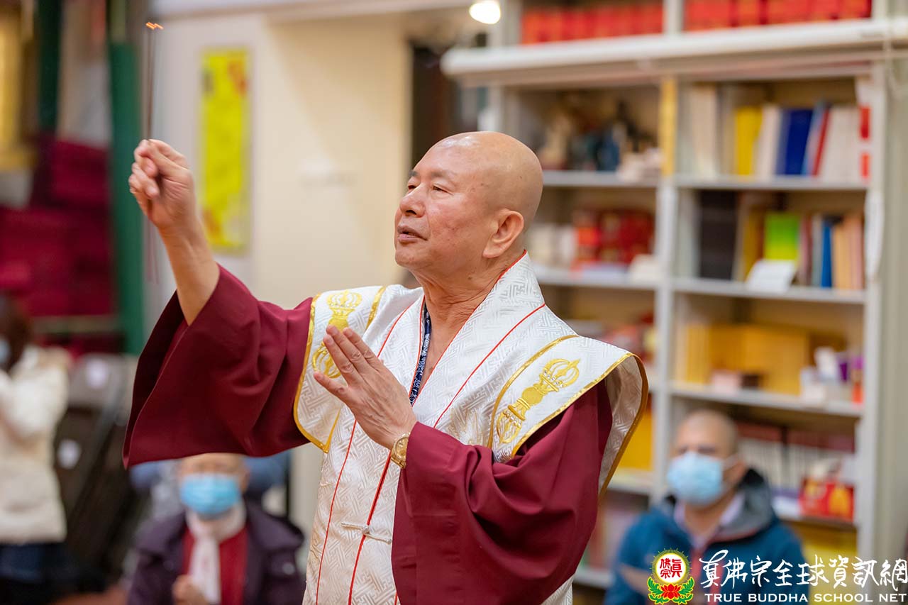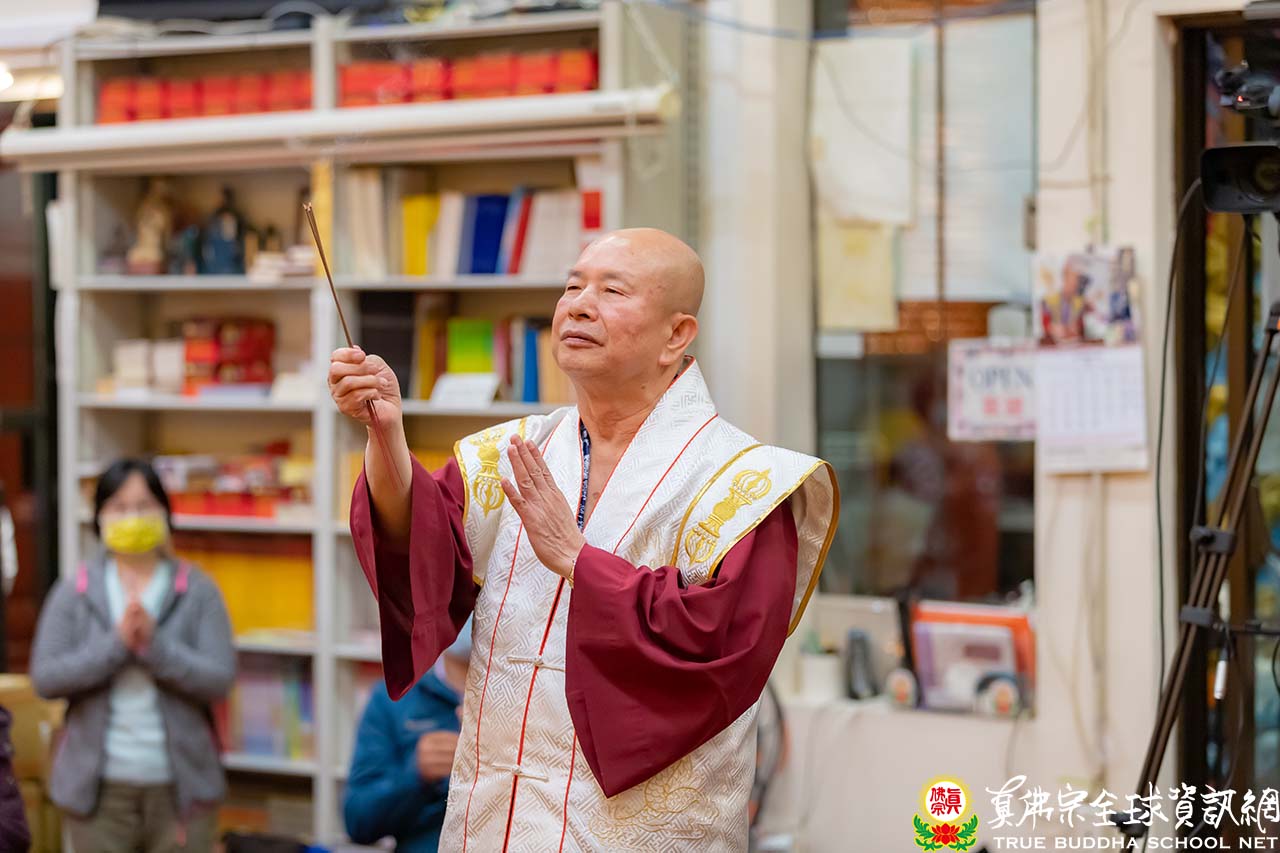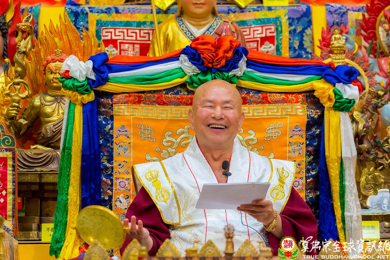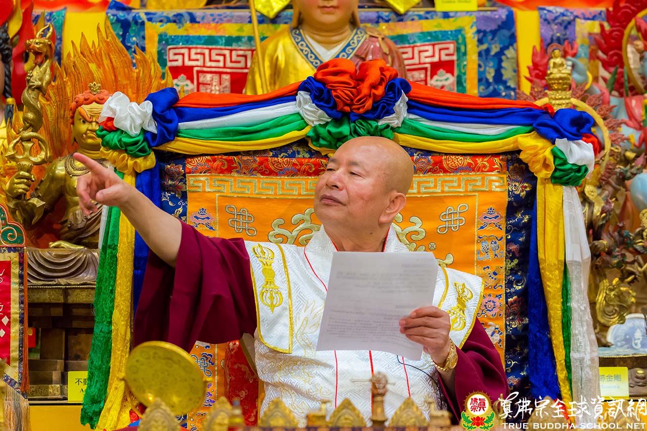 熱烈掌聲中,師尊坐上了法王座,帶領現場與網路上的所有弟子們,同修了一壇莊嚴肅穆的蓮花童子本尊法。