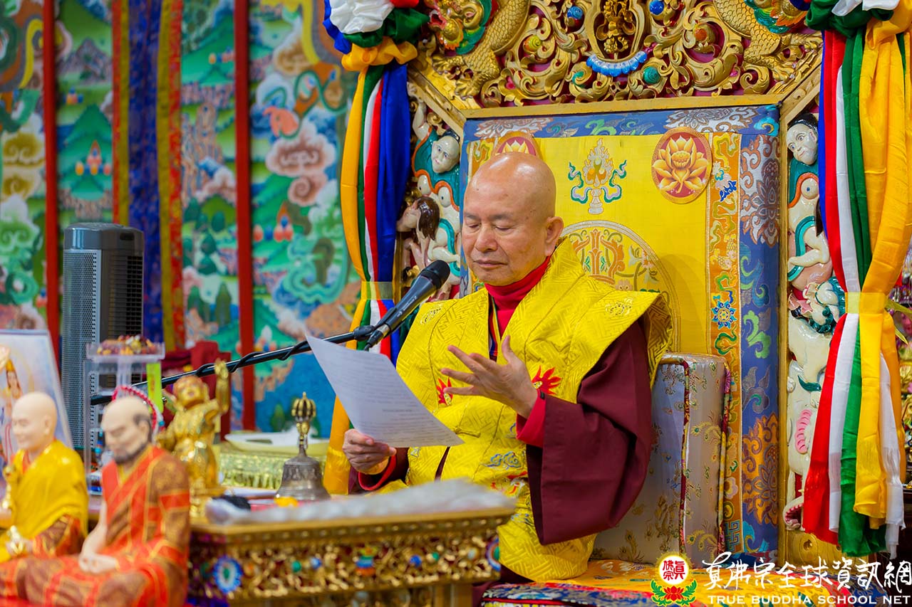 接著蓮生法王開示《道果》,「五煩惱字之別」,嗡-生癡、阿-生貪、吽-生瞋、恰-生慢、呸-生嫉,這五個字在身內各有分佈,各有其作用。
