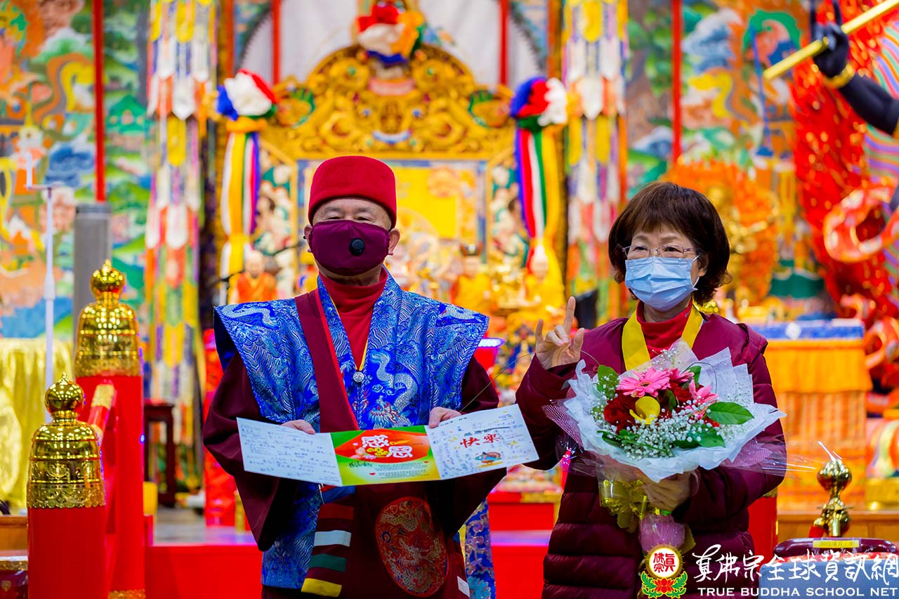 精彩的開示後,蓮生法王賜授現場弟子時輪金剛法及「青春女神」灌頂。