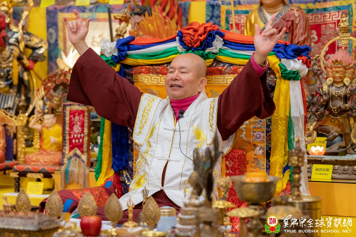 師尊帶領大家敬禮傳承祖師、壇城三寶、同修主尊觀世音菩薩後,用各種語言向大家親切問好!