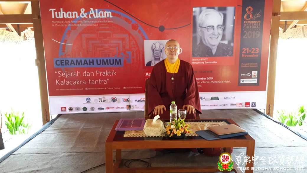 2019年11月22日【真佛宗印尼宗教與學術文化交流】-書展及「論文發表會」速報 2019年11月22日,【真佛宗印尼宗教與學術文化交流】的第二天,真佛宗世界宗務委員會教育處長受邀於印尼MANOHARA HOTEL發表論文《時輪金剛密續的歷史與實踐》。來賓也包含宗外學者與社會大眾。大會以印尼傳統舞蹈序幕。
