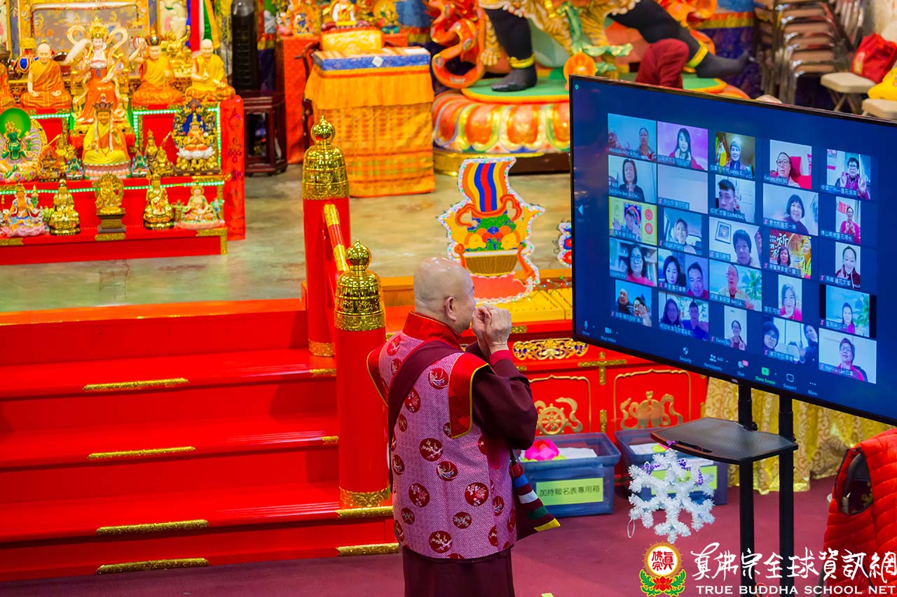 2021年1月17日,蓮生法王盧勝彥於美國彩虹雷藏寺主持「咕嚕咕咧佛母」護摩法會。法會開始前,法王身穿紅色龍袍,以慈祥愉悅的笑容向Zoom上的與會弟子打招呼。此刻,許多Zoom上的弟子也一樣身穿紅衣,熱烈地對法王表達思念之情。