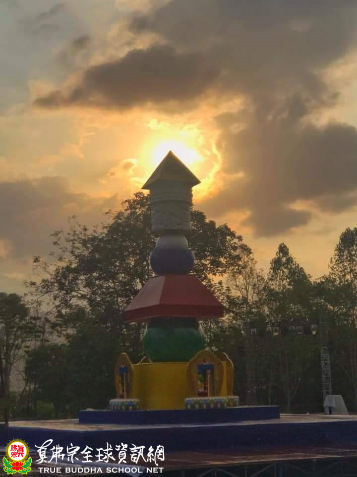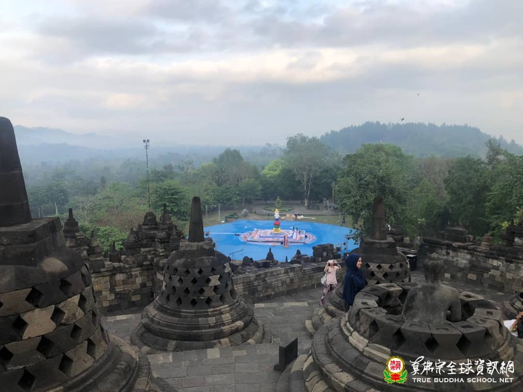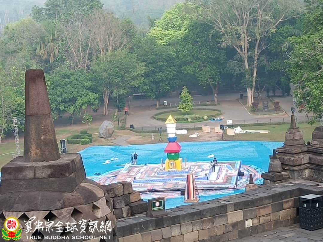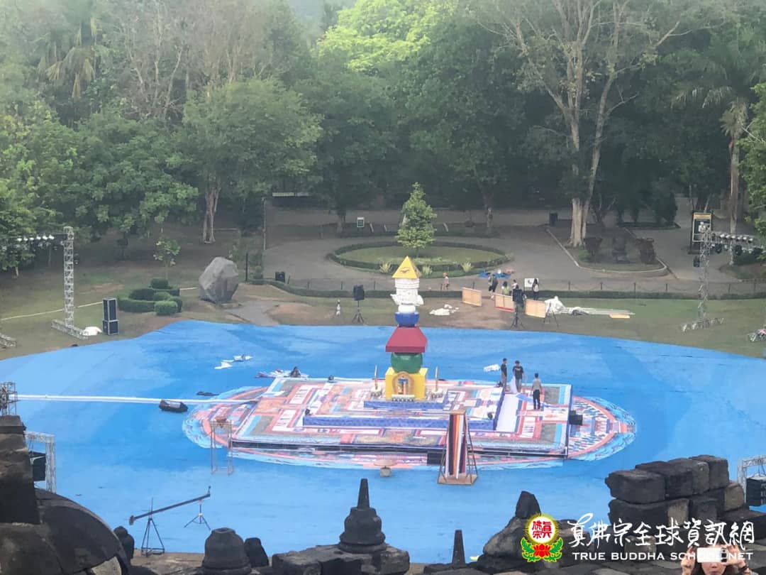 自婆羅浮屠佛塔遙望,真佛宗時輪金剛曼陀羅已完成。真佛宗根本傳承上師蓮生法王聖尊傳下如此珍貴之時輪金剛大法,讓受灌頂的真佛弟子們得以在七世之內成佛,實乃多世修得的福緣!我們感恩根本上師所賜之福份,讓我們得以在印尼婆羅浮屠佛塔聖地,建立時輪金剛曼陀羅,宣揚蓮生法王之偉大成就,與大眾結緣,廣度有緣眾生!