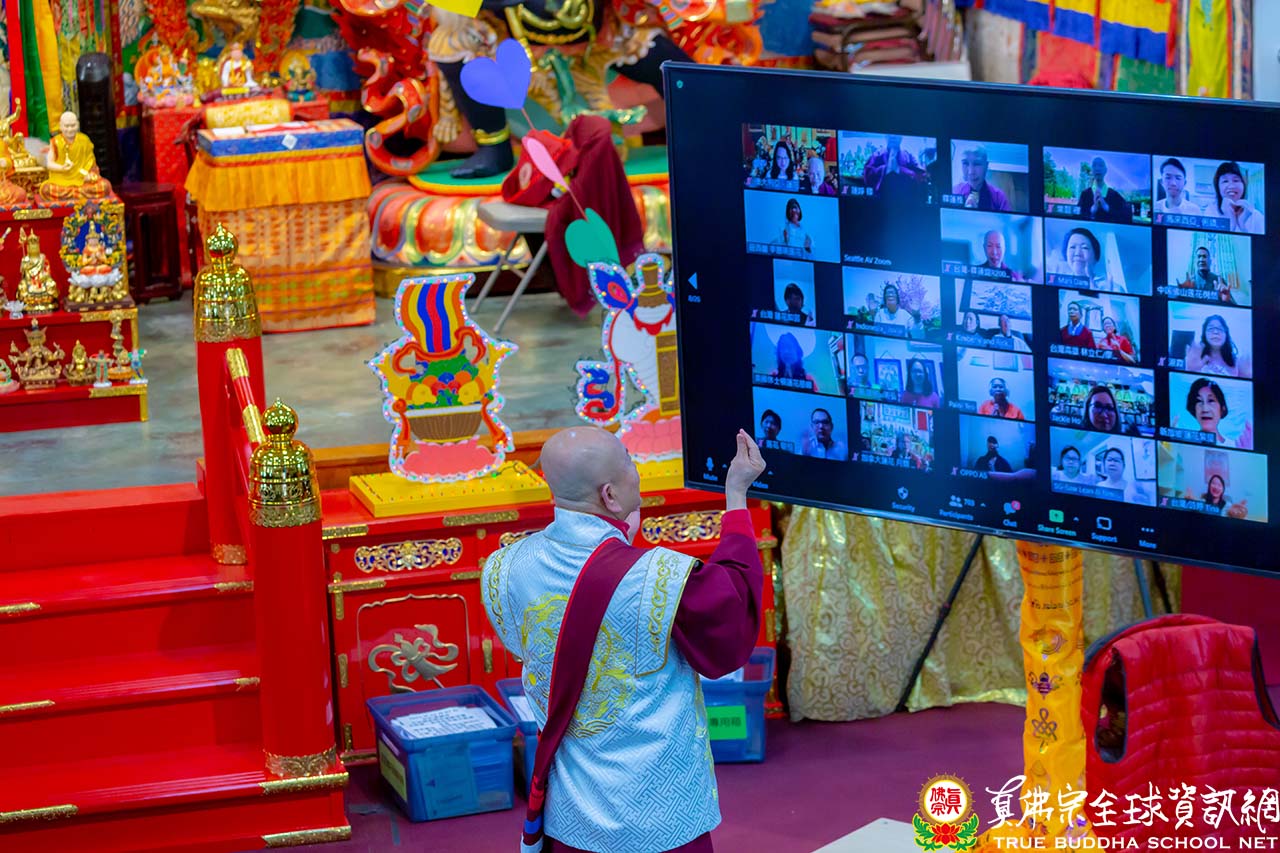2020年3月7日彩虹雷藏寺舉行了不空罥索觀世音菩薩護摩法會,此次法會對每一位真佛弟子意義非凡。法會開始時分Zoom線上已有七百多位弟子迫切等待蓮生法王,且YouTube直播也有近3000位線上與會者。世界各地的同門心中只有一個願望,就是請佛住世。司儀代表宗委會及眾同門唸出了一段請佛住世的心聲後,殊勝的法會就此拉開了序幕,在熊熊護摩火點燃的同時也點燃了弟子們的希望,驅散了世間的無明。