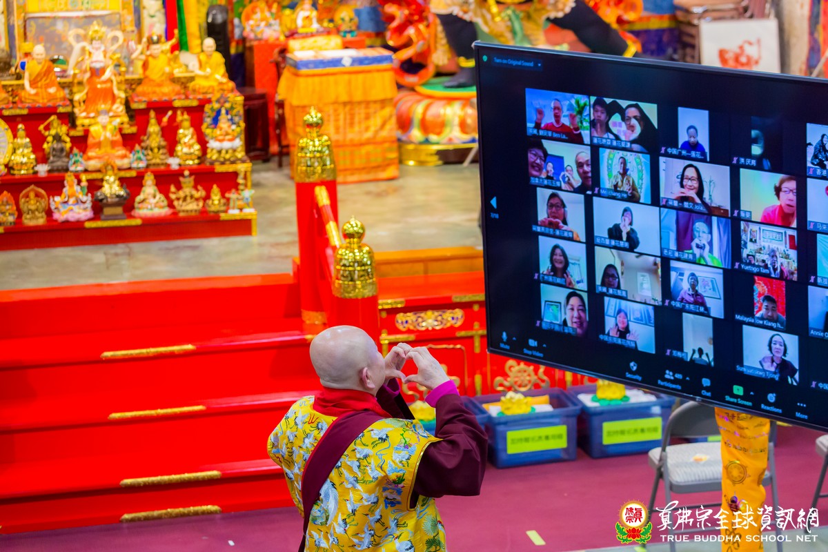 最後一個問題來自加拿大的弟子,是關於《靈仙根本懺悔法》。請師佛示範此法的手印 (手印 : 左手握拳於腰際。右手開掌,五指平伸)。並詢問此懺悔法是否可以遙灌頂。