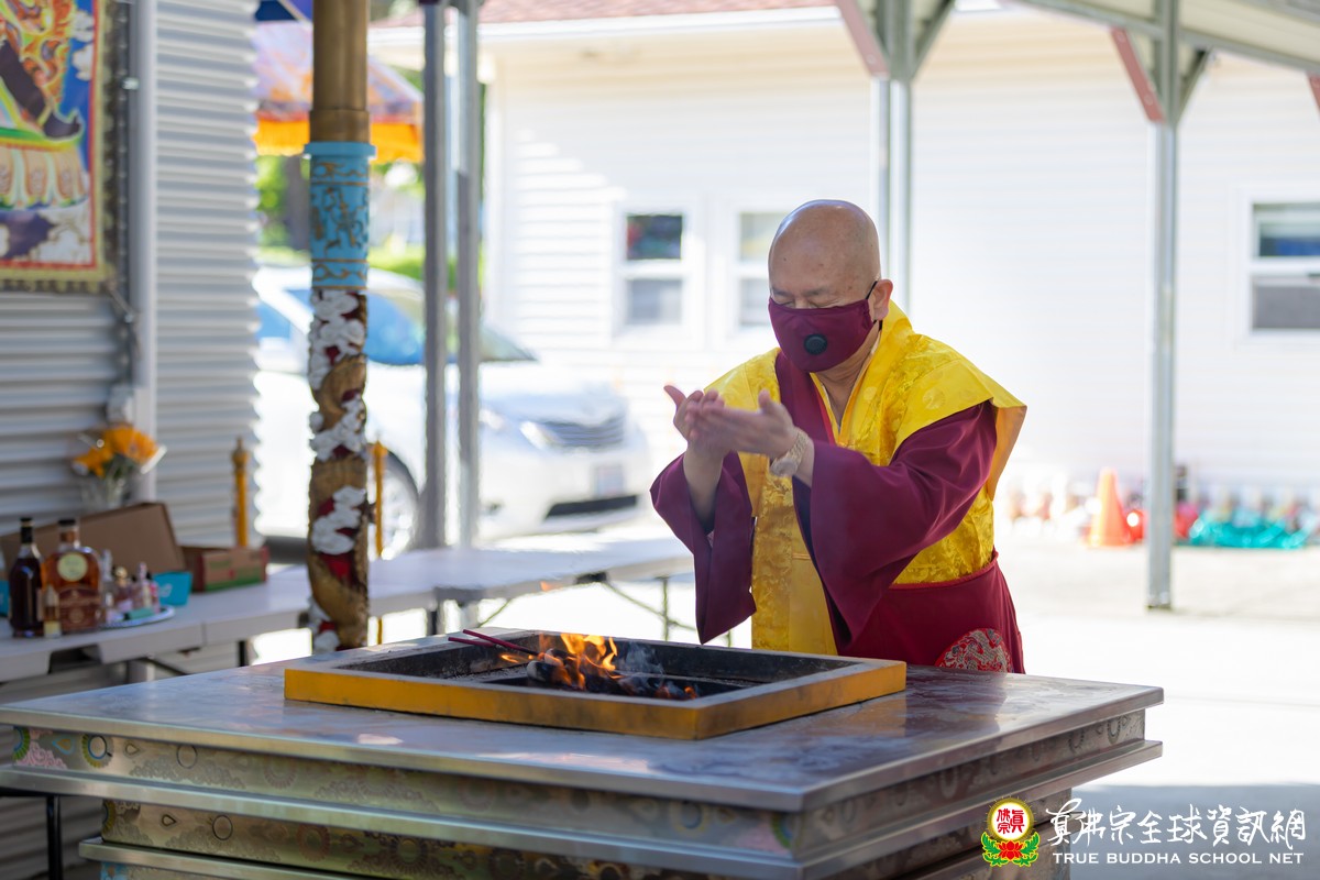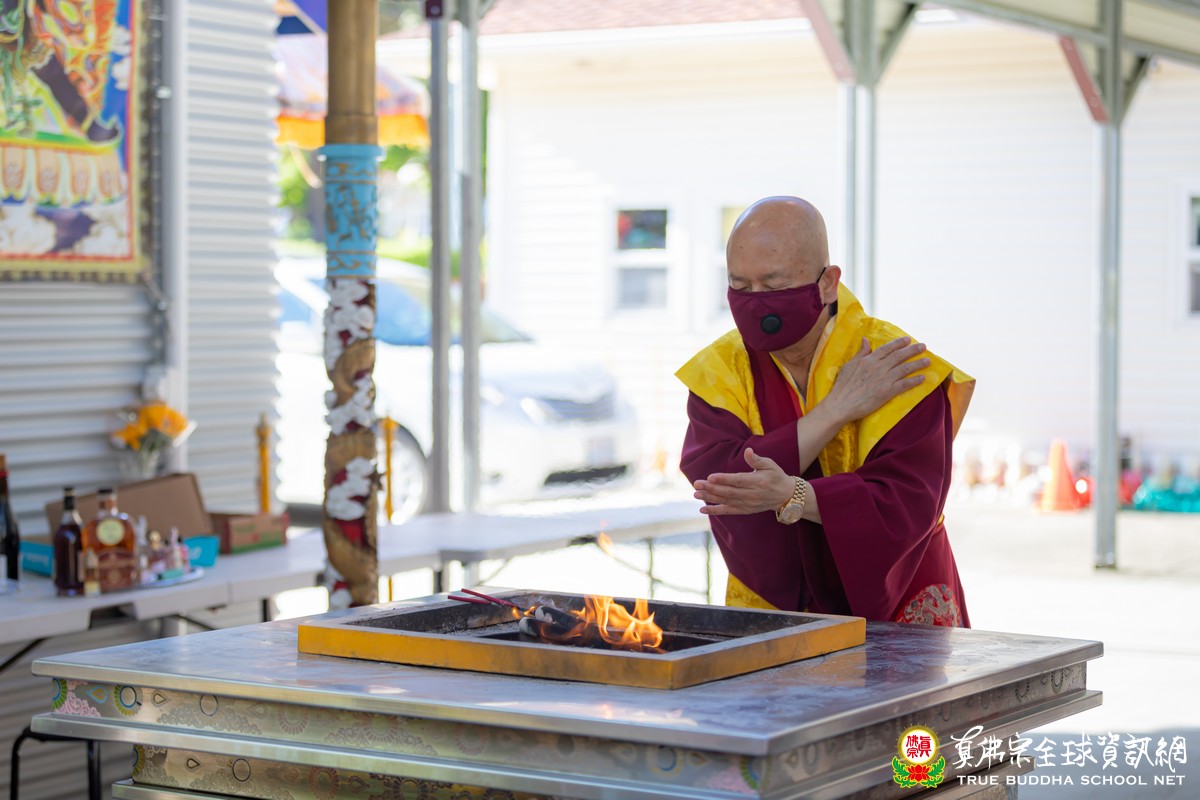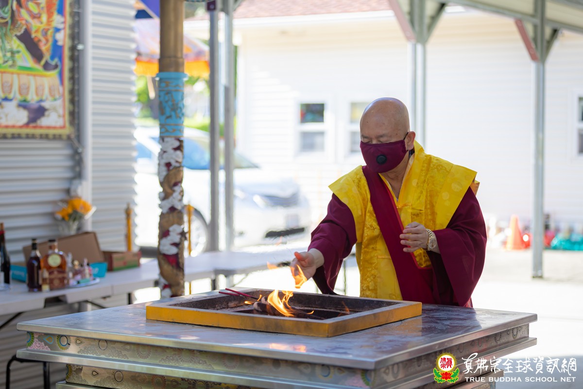 2021年5月16日,美國真佛宗西雅圖彩虹雷藏寺恭請根本上師蓮生活佛主壇「黃財神護摩大法會」。