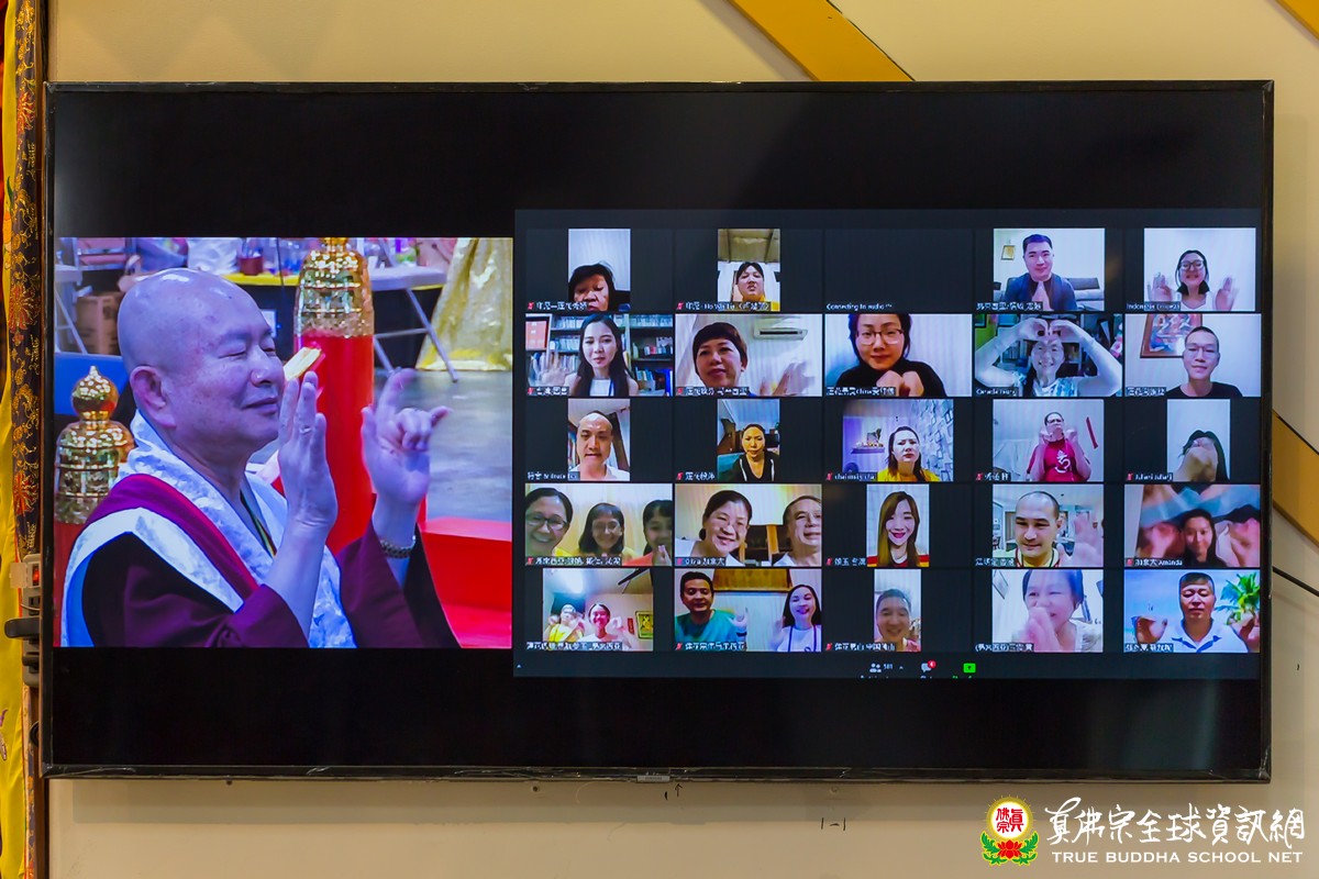 最後,法會也到了尾聲。法王頂禮壇城後,便與Zoom上弟子一一道別。在今天的開示中,法王的語言都是在轉大法輪;回答弟子們的問題時,以精彩的字字句句調御弟子們的心。法王佛誕來臨之際,歡迎大家一起參與《萬人持誦真佛經 》及持誦長壽佛心咒活動,以此無量功德迴向蓮生法王健康長壽、恆轉法輪、請佛住世!