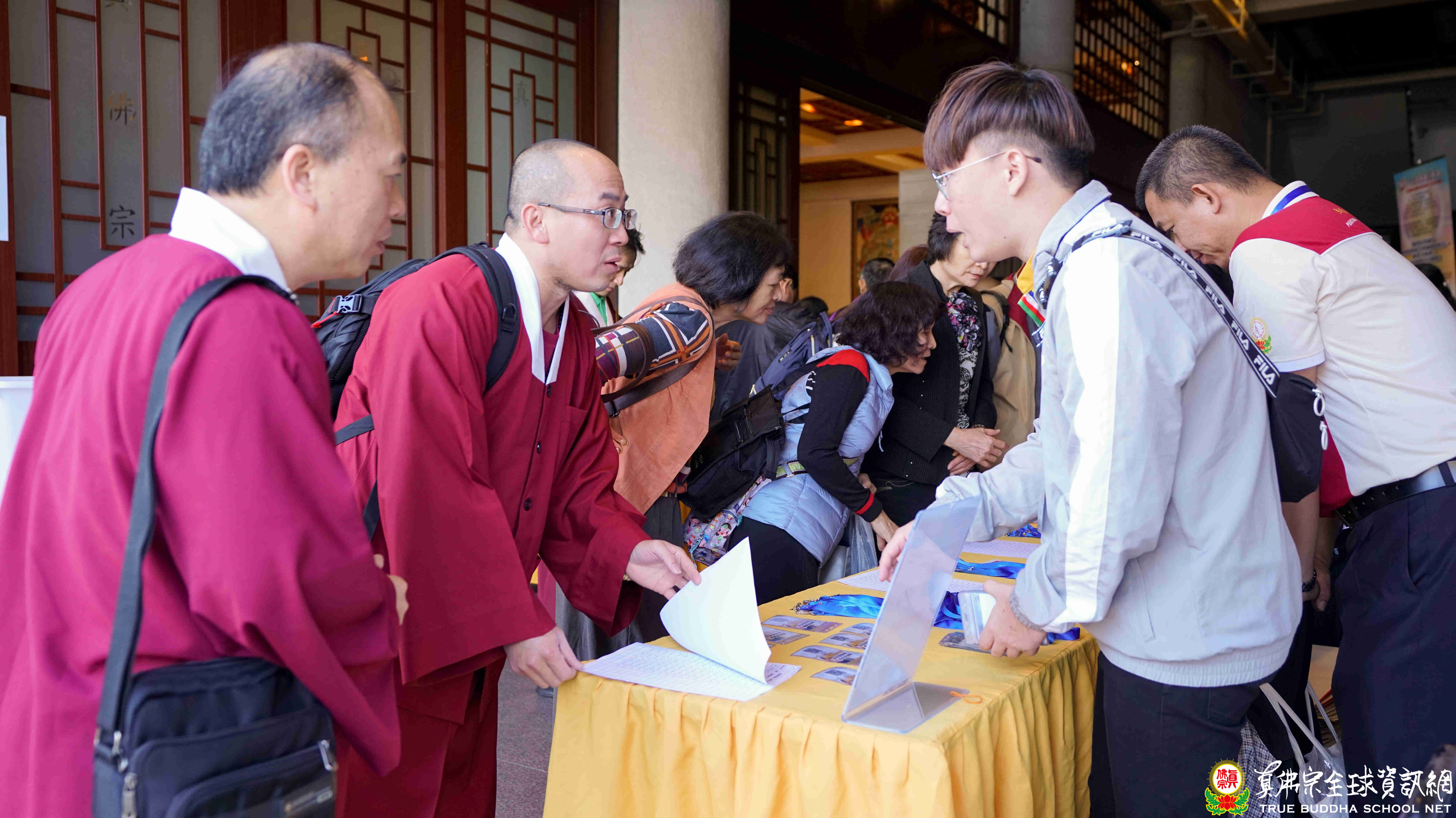 第一天早上8點左右,人潮已陸續湧入會場,宗委會會長蓮花程祖上師與各處處長,包括教育處長蓮訶上師、文宣處長蓮悅上師、法務處長蓮東上師及密教總會理事長蓮歐上師、台灣雷藏寺蓮哲上師、蓮栽上師等皆已蒞臨設於密壇的會場,報到處、真佛般若藏服務處也已就緒展開服務,密壇內工作人員有條不紊地引領與會學員分區入座。此次活動,宗委會特別設計QRCode在每位學員名牌上,直接以名牌掃描簡化簽到手續,使報到流程更加簡捷便利。