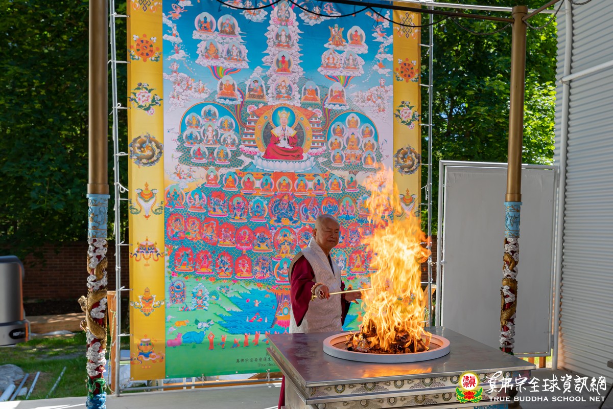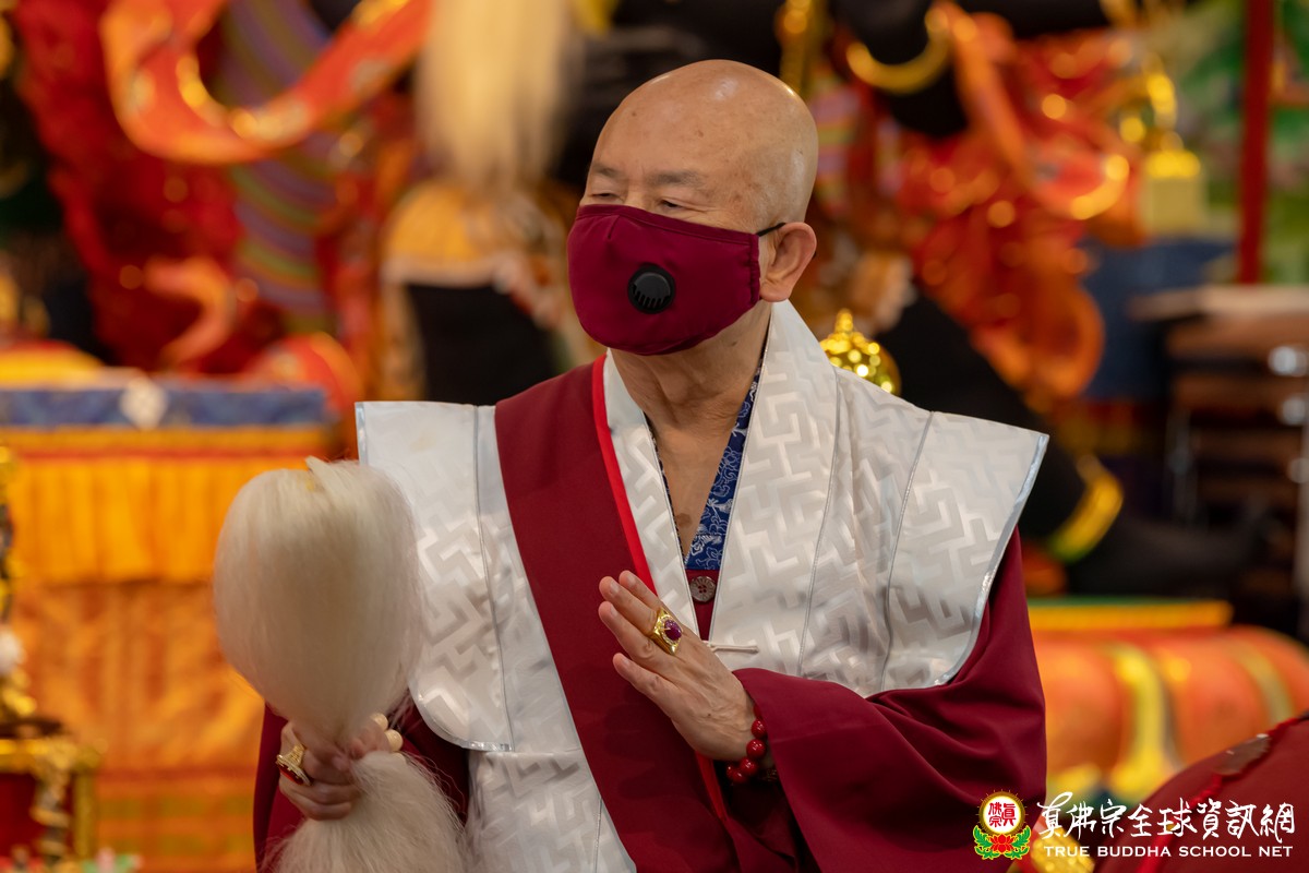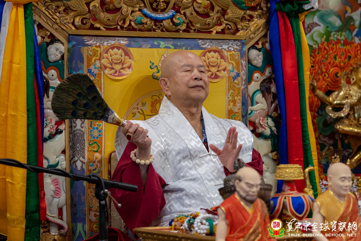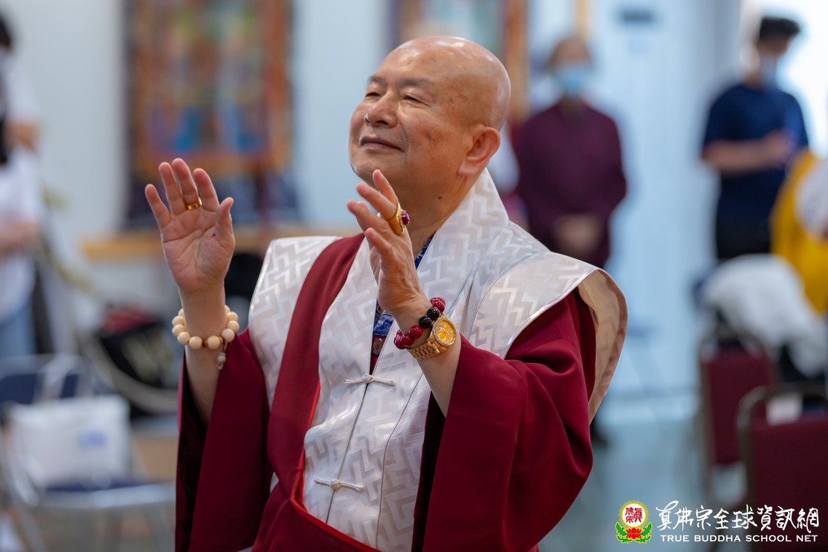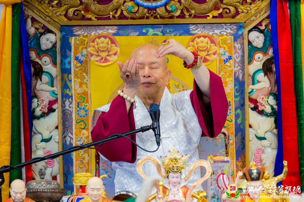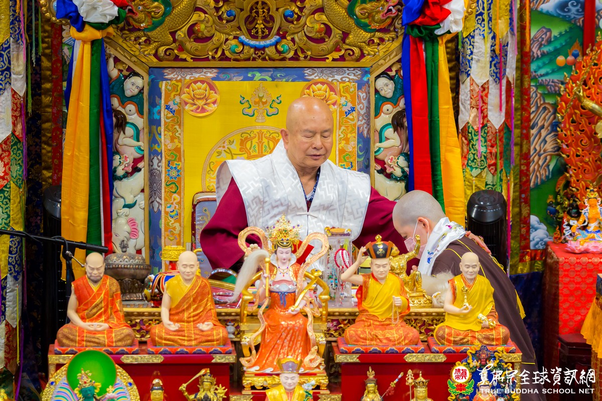 開示已畢,眾弟子齊唱「父親節快樂」歌祝賀真佛宗偉大的慈父蓮生法王父親節快樂,並請法王吹蠟燭及切蛋糕。zoom上眾弟子也紛紛祝賀法王。接著法王賜授在場弟子無上珍貴的蓮花童子法灌頂,法會吉祥圓滿。