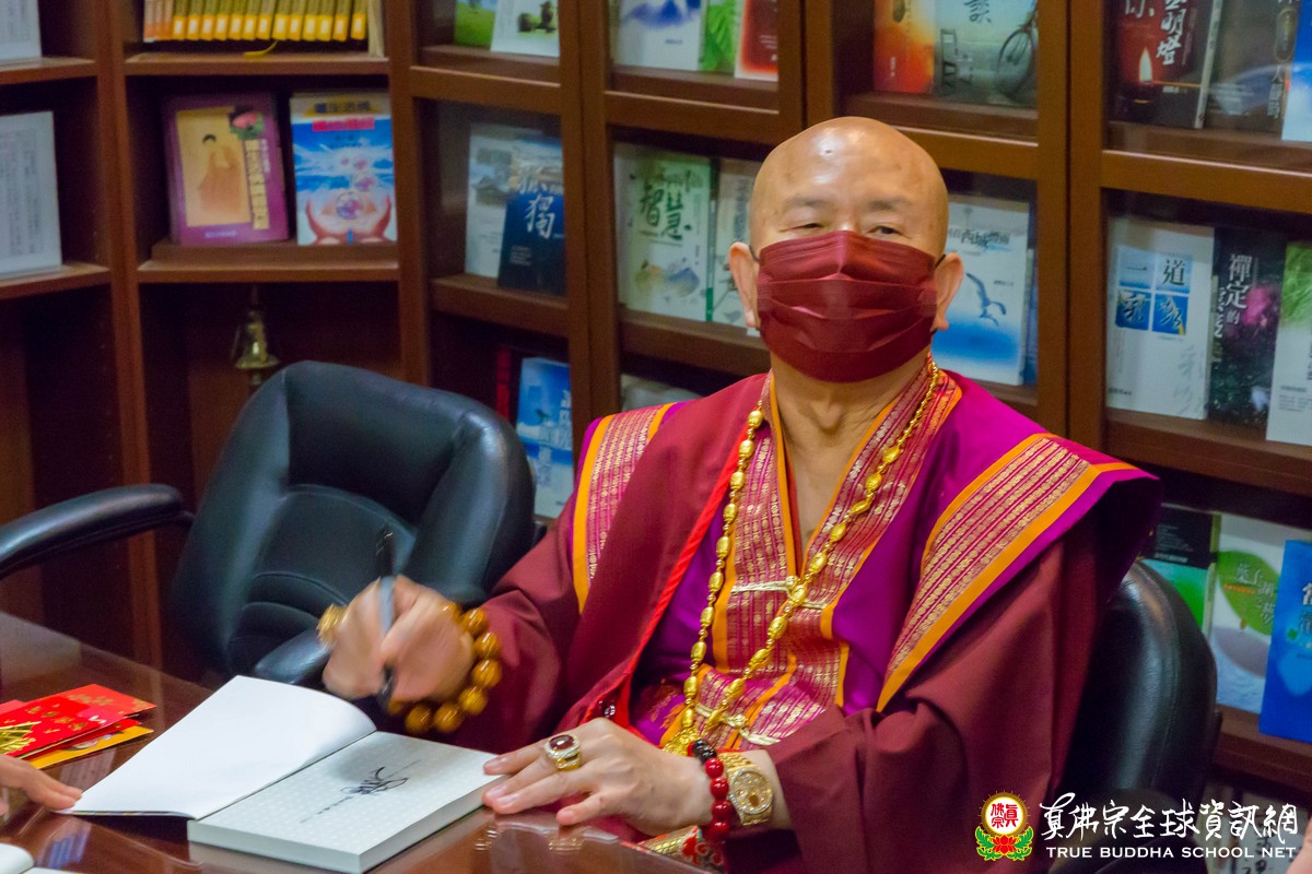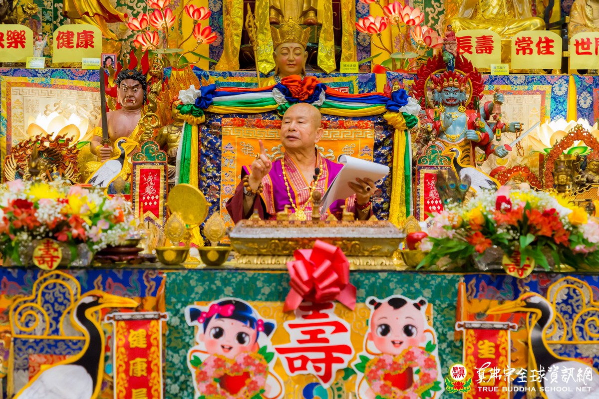 最後師尊講了幾則引申佛法的笑話,接著義工推出大蛋糕,與會大眾熱情唱著各種語言的生日歌,再恭請師尊許願吹蠟燭切蛋糕。雖然身體不適,慈悲的師尊仍然為了與會大眾用拂塵一一加持賜福,並為大衆一一簽書,師尊實在太慈悲了!最後每個人都得到壽桃與壽包,歡天喜地的滿載而歸,幸福滿滿!祈願師尊能佛體安康、長壽自在、永轉法輪!真佛密法永續不斷!感恩!再感恩!