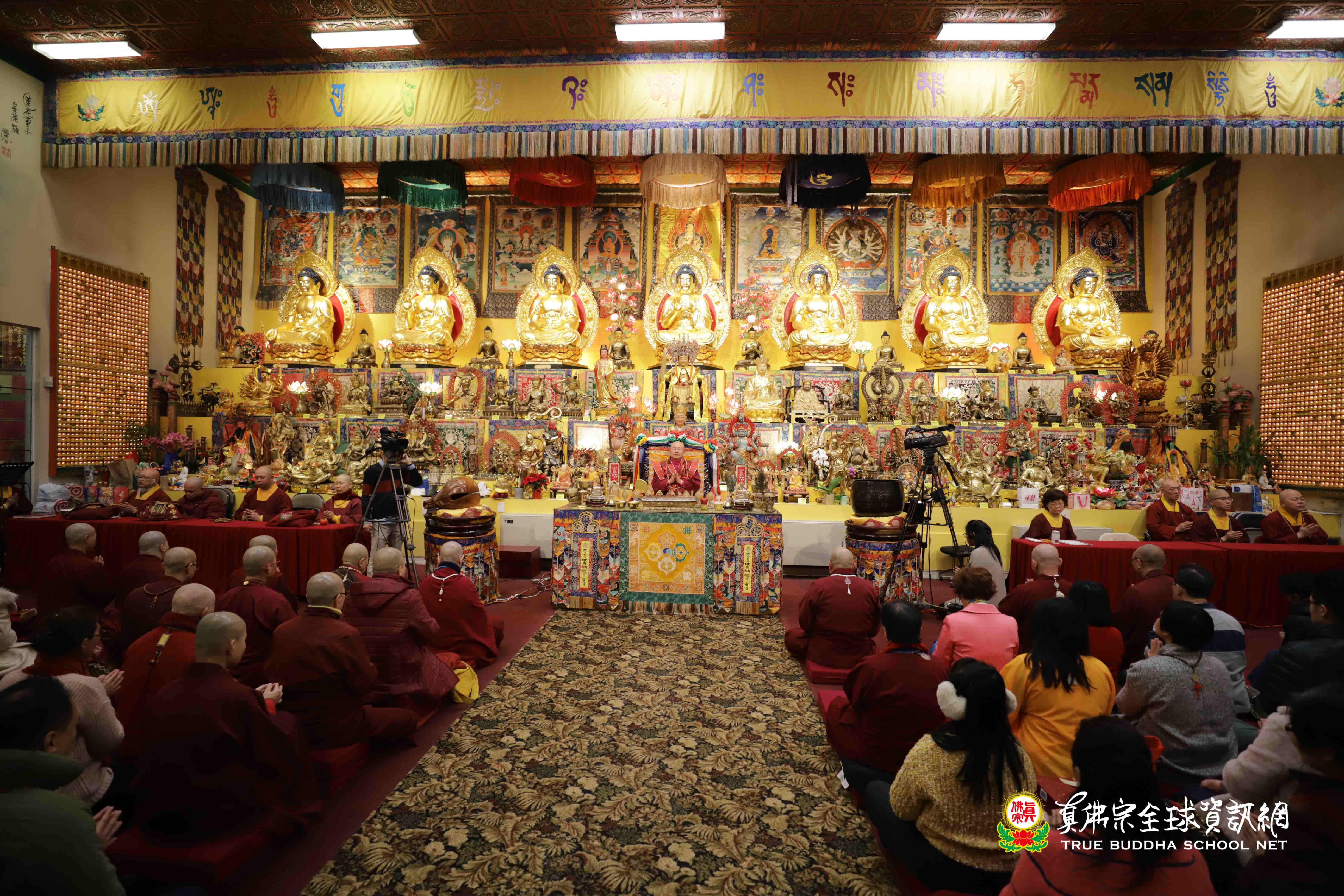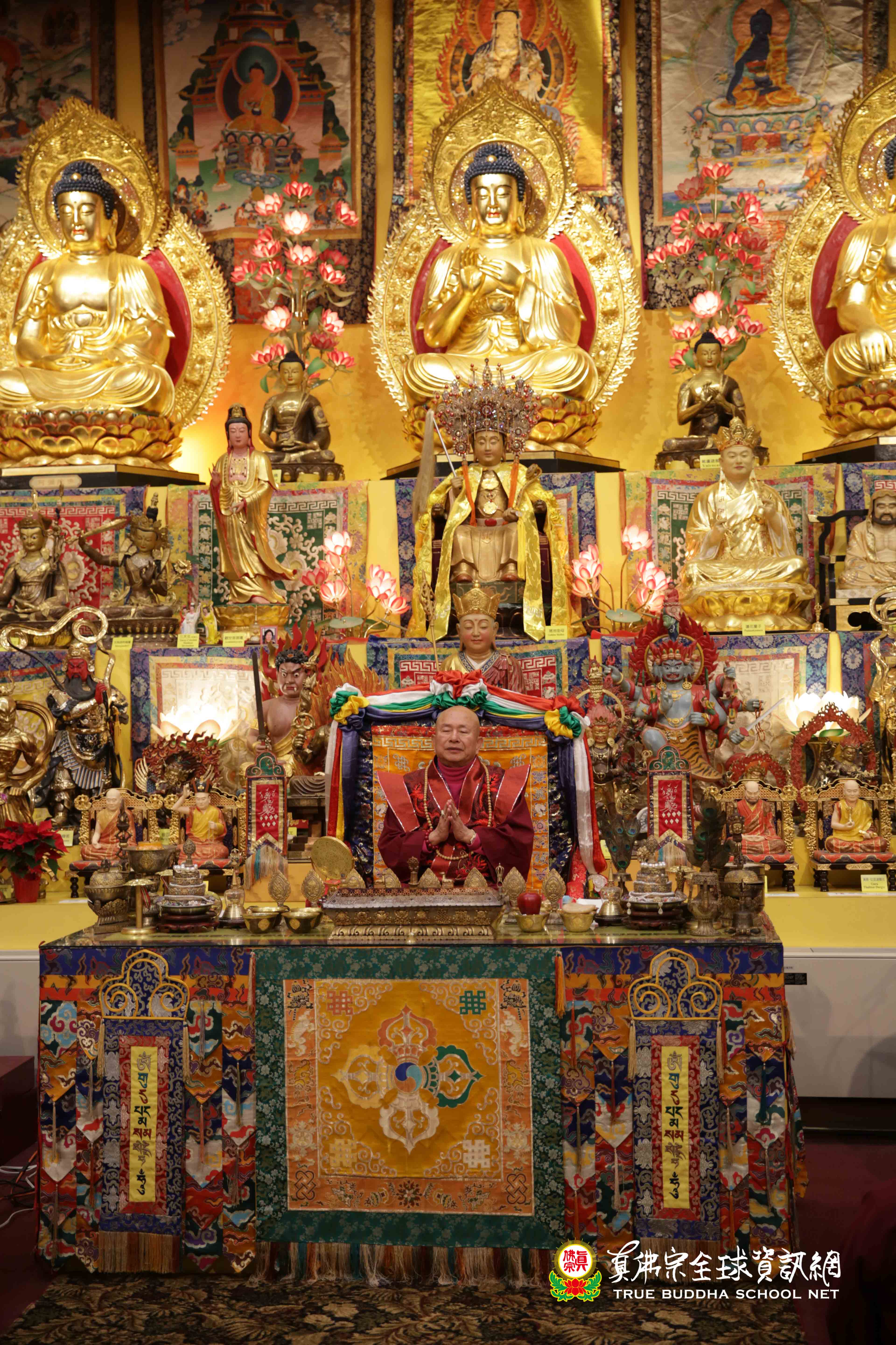 蓮華生大士最有名的有五個佛母,曼達拉娃(印度)、依喜措嘉(西藏)、卡拉悉地(尼泊爾)、釋迦爹娃、她希。西雅圖新春法會將首傳的依喜措嘉佛母,是西藏的第一大佛母,藏地的第一大佛母是蓮師的道伴。依喜措嘉是妙音天女的轉化,妙音天女在天上與吉祥天女是姐妹,師母就是吉祥天。蓮華生大士在西藏弘法五十年,祂與藏王赤松德真王、寂護大師,在靠近雅魯藏布江的地方建立了西藏第一座寺廟桑耶寺。蓮師把祂修行的心要口訣,放到赤松德真王的腦海裡。而今天的盧師尊同樣的在腦海裡有伏藏,就是蓮師將伏藏放在師尊的腦海裡面。其中有一個秘密就是,蓮師在西藏轉世成卓米譯師,卓米譯師就是蓮師的轉化。卓米譯師到印度的超戒寺學法,他取回了薩迦教最大的法「道果」,回到了西藏,他本身得到畢瓦巴最大的加持和傳承。聖尊今天能講道果,就是因為卓米譯師就是蓮師的轉世。蓮師最擅長的就是大圓滿九次第的法,聖尊跟隨蓮師,知道了最高的阿底瑜伽,阿底瑜伽最重要的一個是「止」(止斷)、一個是「超」(頓超),超越了生起次第、超越人間。所以聖尊與蓮師的根源非常的深,祂的一個秘密傳承是來自於蓮華生大士。聖尊曾被蓮師帶到岩洞做了兩個灌頂,一個灌頂是蓮師顯現百寶光明,光明從每一個毛細孔進到聖尊的身體裡。第二個灌頂是從口進入身體,在從密輪出來,這都是在禪定當中所產生出來的,非常不簡單。