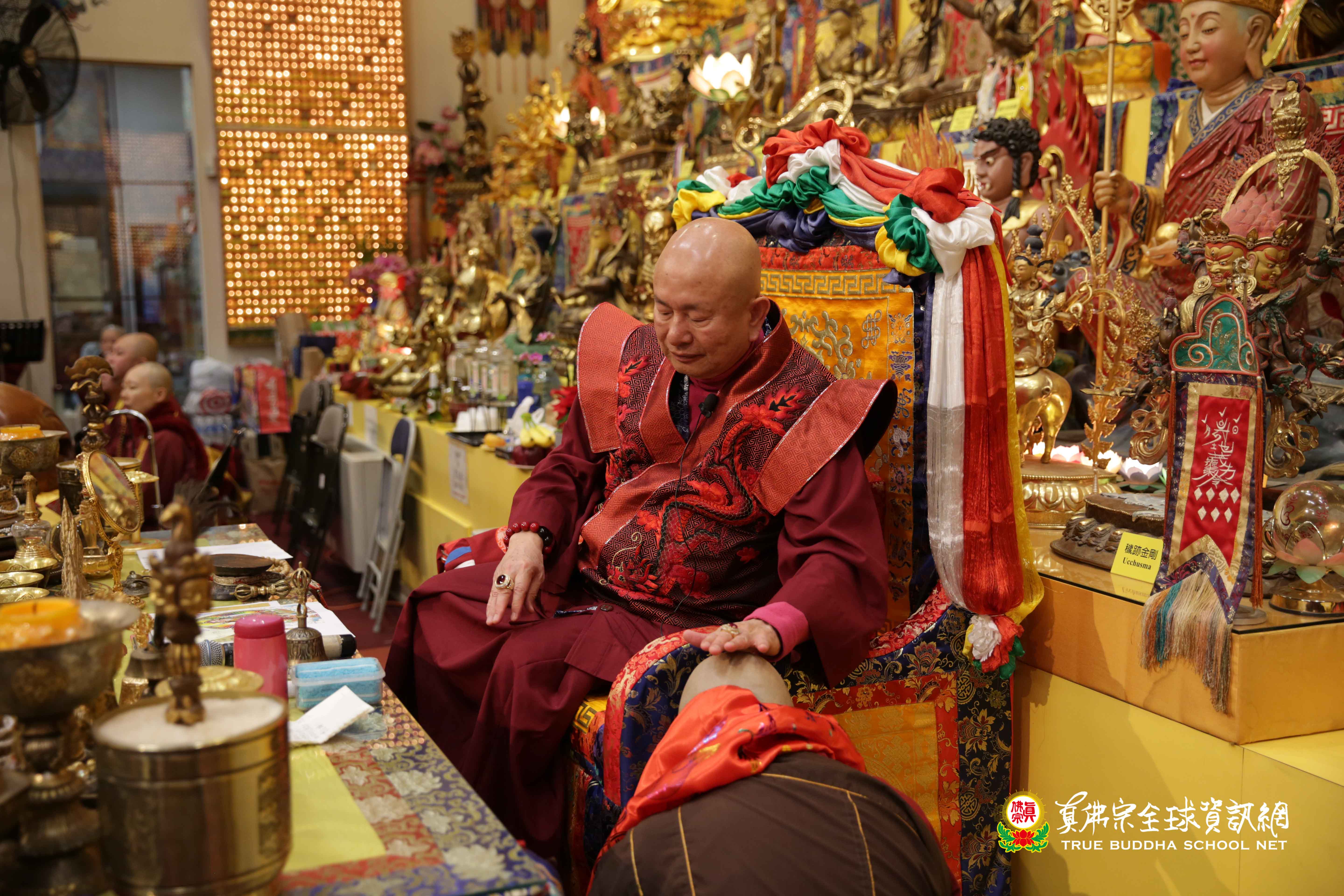 會後,聖尊為求皈依的信眾賜受殊勝的皈依灌頂、加持大悲咒水,以及開光佛像。臨行前,聖尊還為與會大眾摩頂加持如願。步出大雄寶殿的大門,在迎面拂來的寒風中,望著聖尊慈愛的身影,回想聖尊在最後開示的結語,祂的智慧比任何人都高,祂的身體比任何人都強,這如此強大堅決的自信,讓弟子們的內心充滿了敬仰的澎湃,能皈依修行已大成就的根本上師,是非常值得驕傲的。