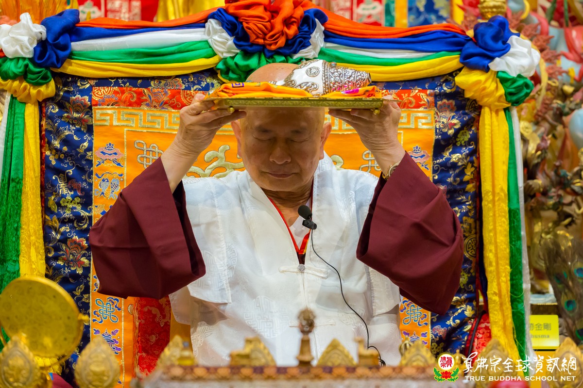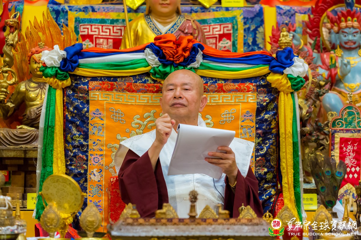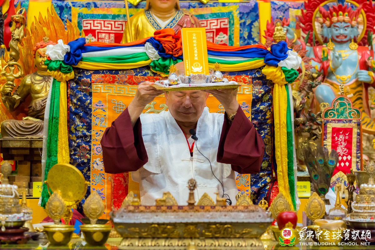請法儀式在莊嚴的蓮花童子樂聲中揭開序幕,由世界真佛宗宗務委員會、西雅圖雷藏寺、彩虹雷藏寺及台灣雷藏寺代表全球真佛弟子,恭請聖尊蓮生活佛慈悲講授「金剛般若波羅蜜經」。