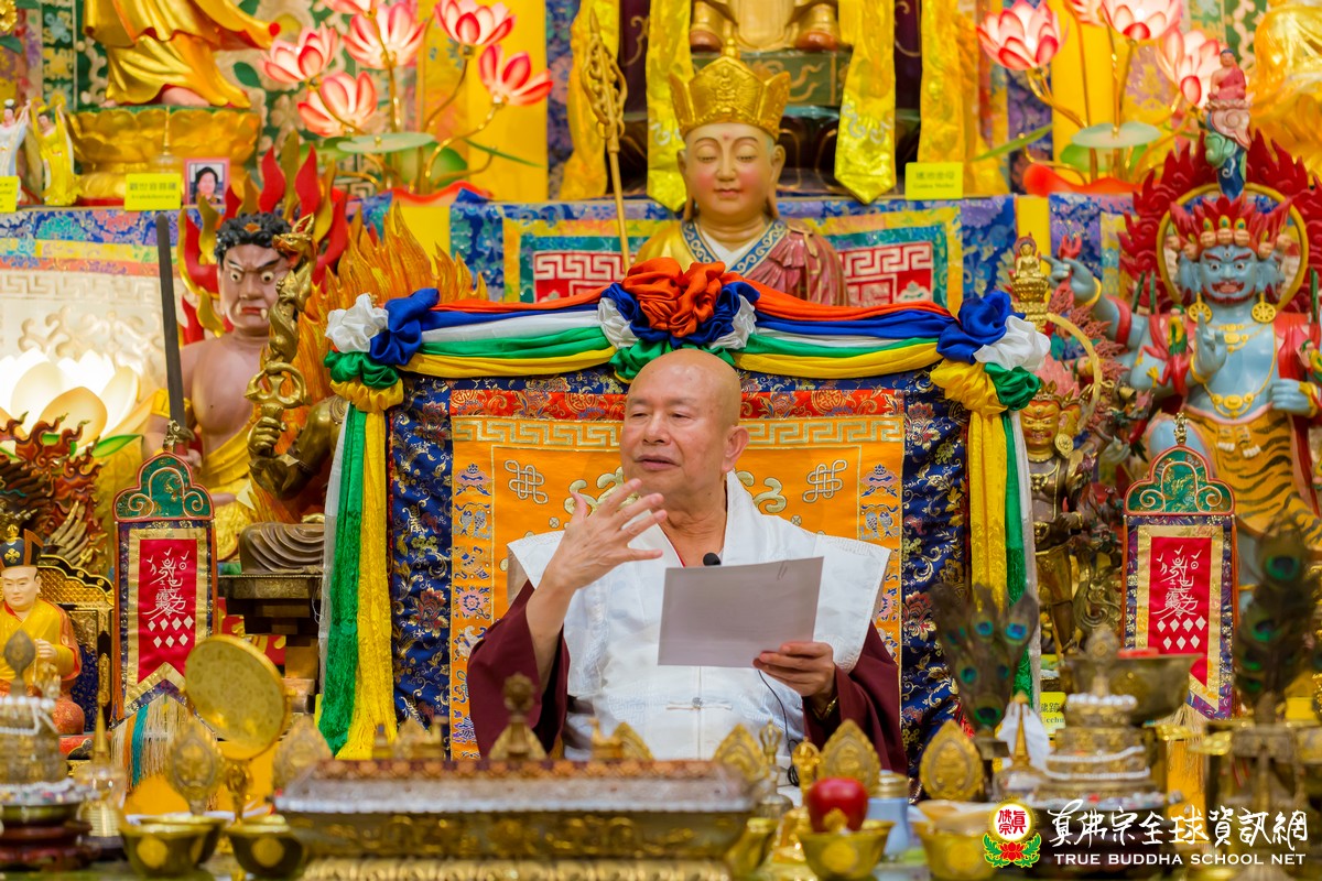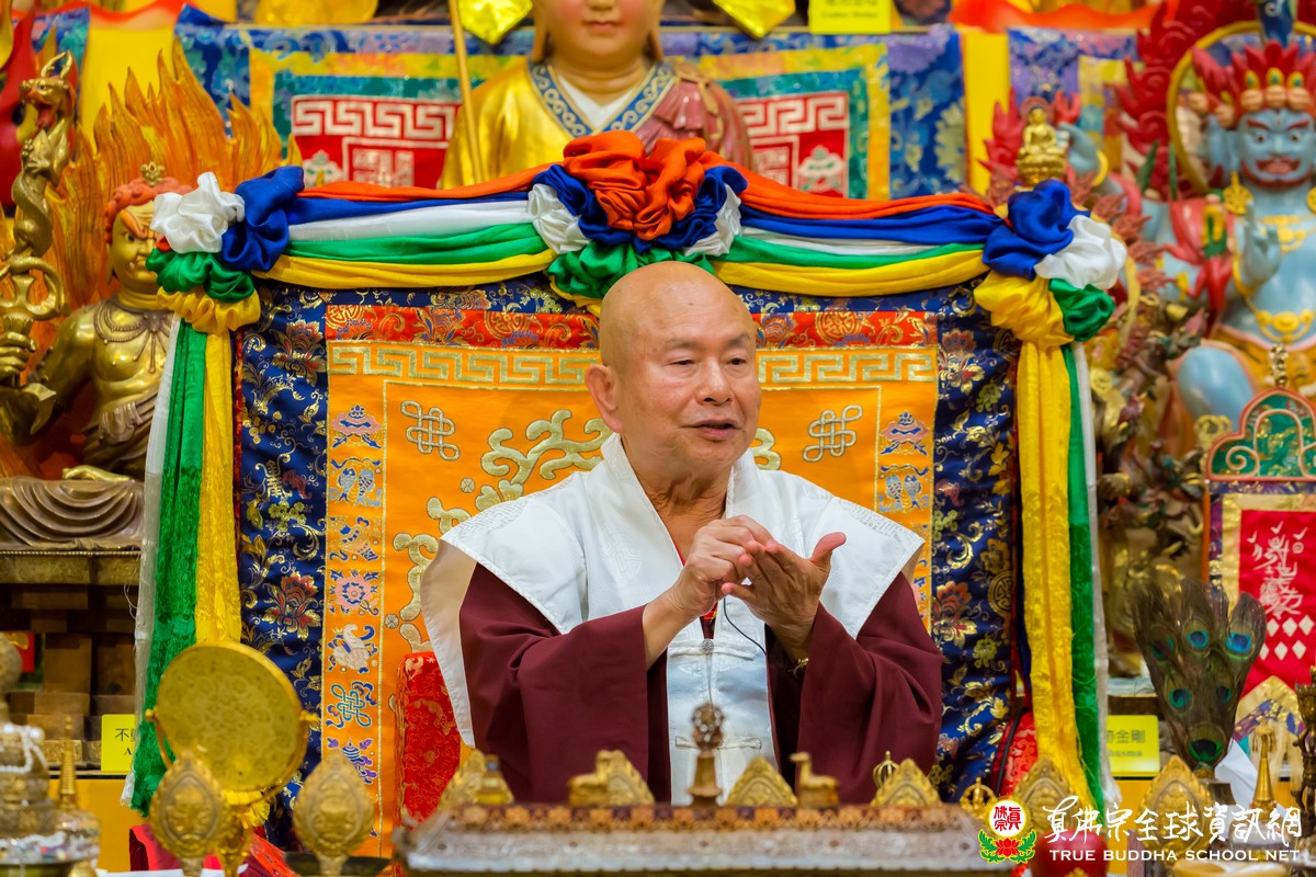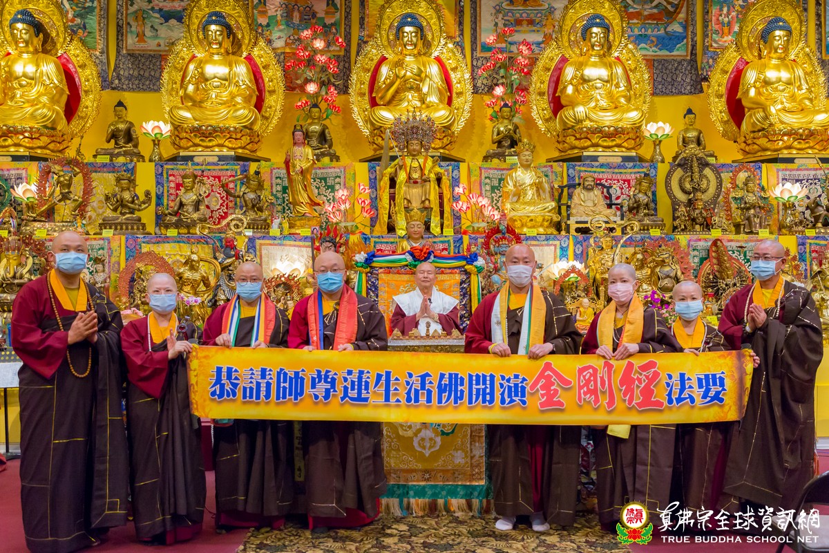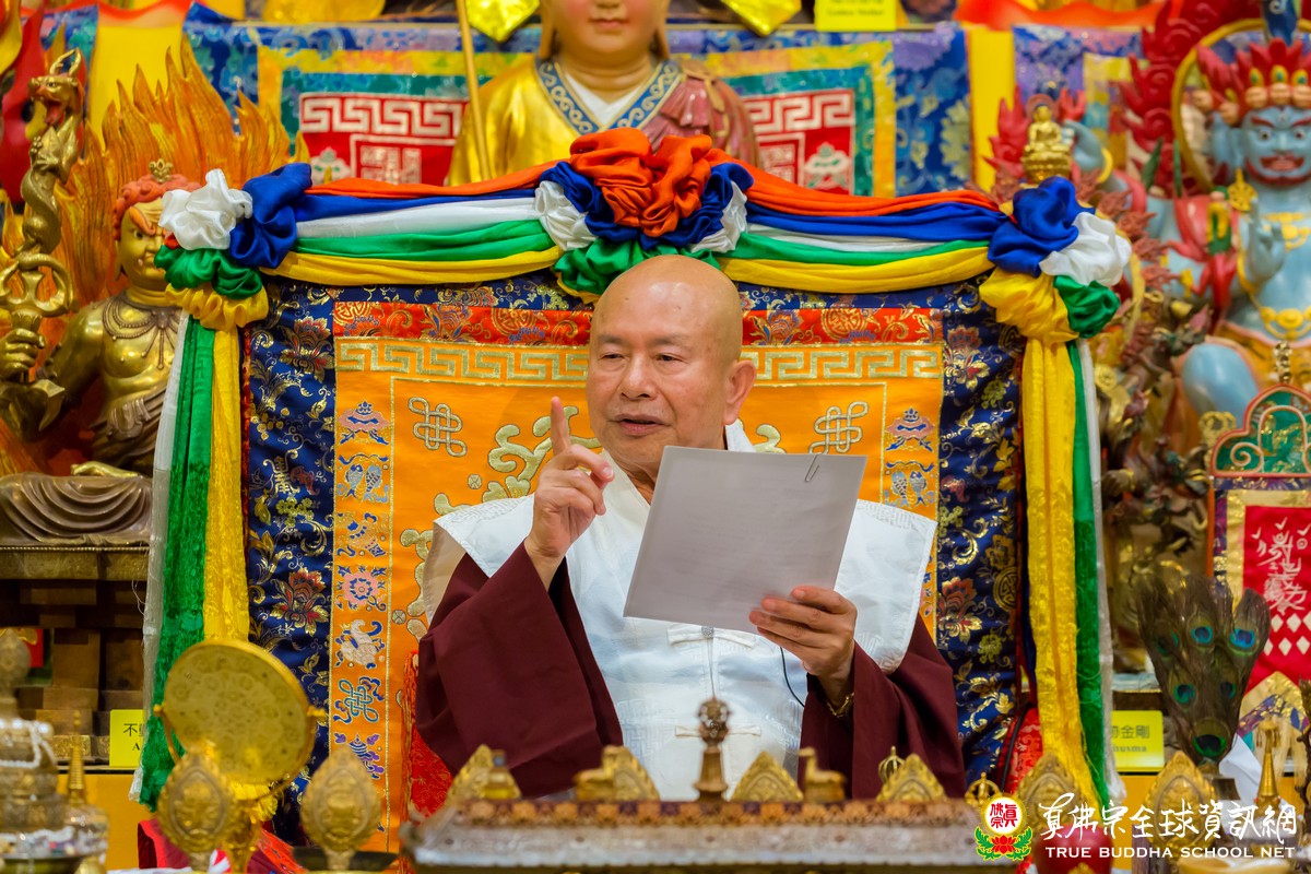 請法儀式在莊嚴的蓮花童子樂聲中揭開序幕,由世界真佛宗宗務委員會、西雅圖雷藏寺、彩虹雷藏寺及台灣雷藏寺代表全球真佛弟子,恭請聖尊蓮生活佛慈悲講授「金剛般若波羅蜜經」。