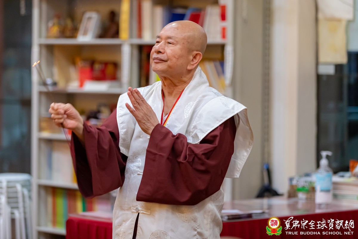 開示結束後,師尊為新皈依者做皈依灌頂,並慈悲加持大悲咒水、為佛像開光,並為與會大眾及網路上的同門善信大德加持!今晚的同修圓滿結束,大家都帶著滿滿幸福的笑容,期待下星期六再與佛相聚!