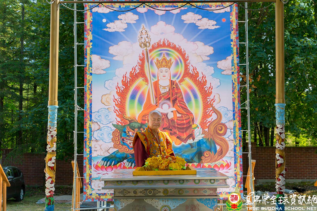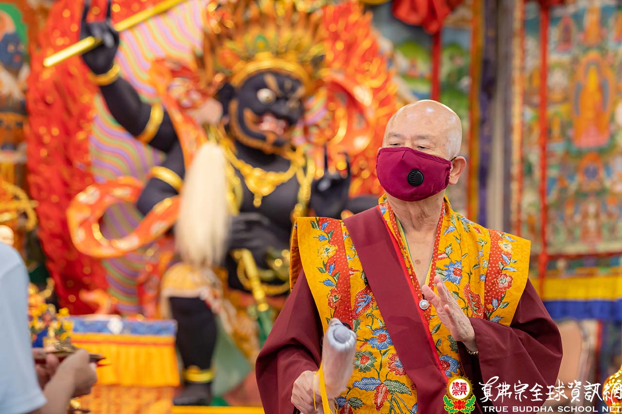 2021年8月15日下午美國真佛宗西雅圖彩虹雷藏寺恭請根本上師蓮生活佛主壇地藏王菩薩護摩法會,並講授《金剛經》