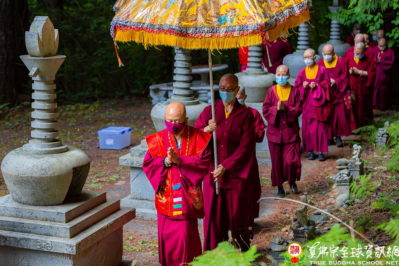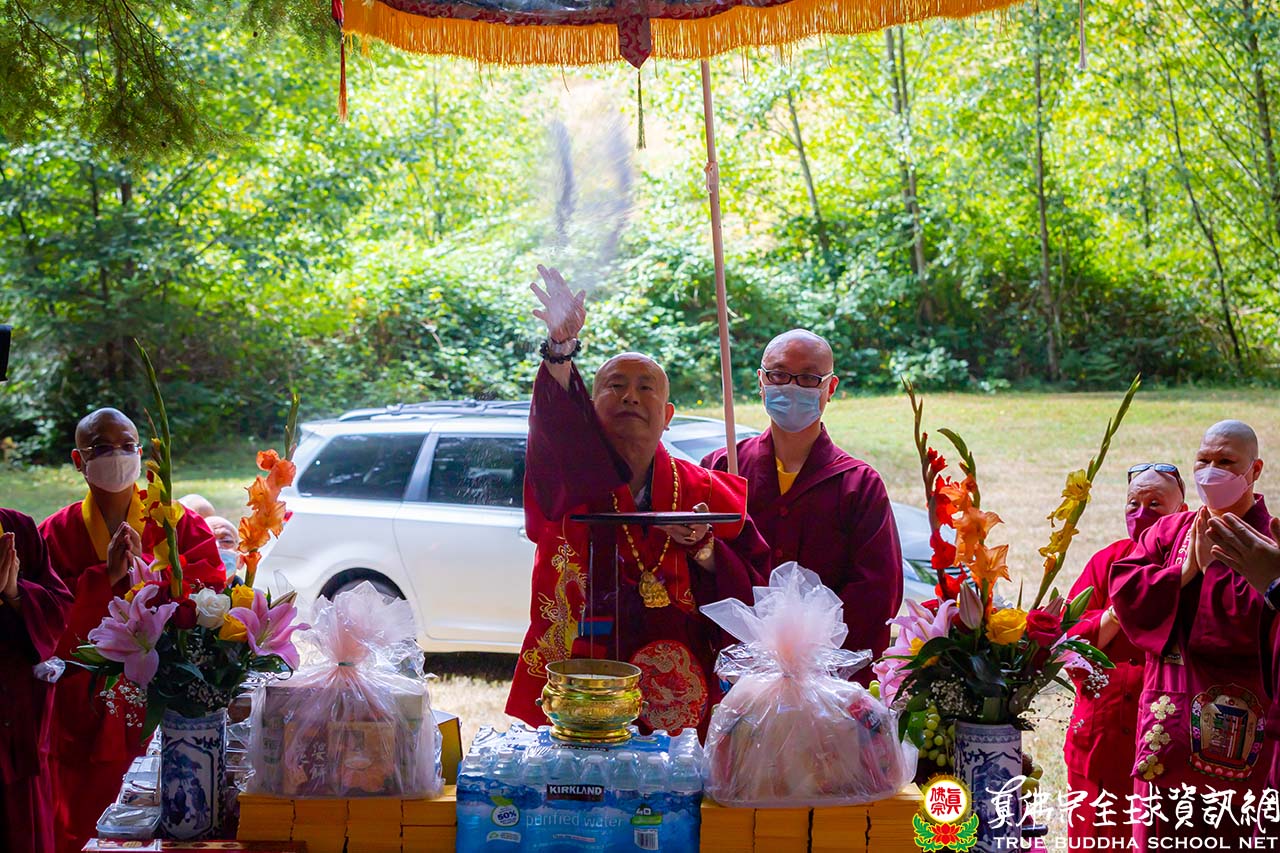 2021年9月5日,美國真佛宗西雅圖彩虹雷藏寺恭請根本上師蓮生法王在彩虹雷藏寺主持生基儀式,為眾弟子們做生基。