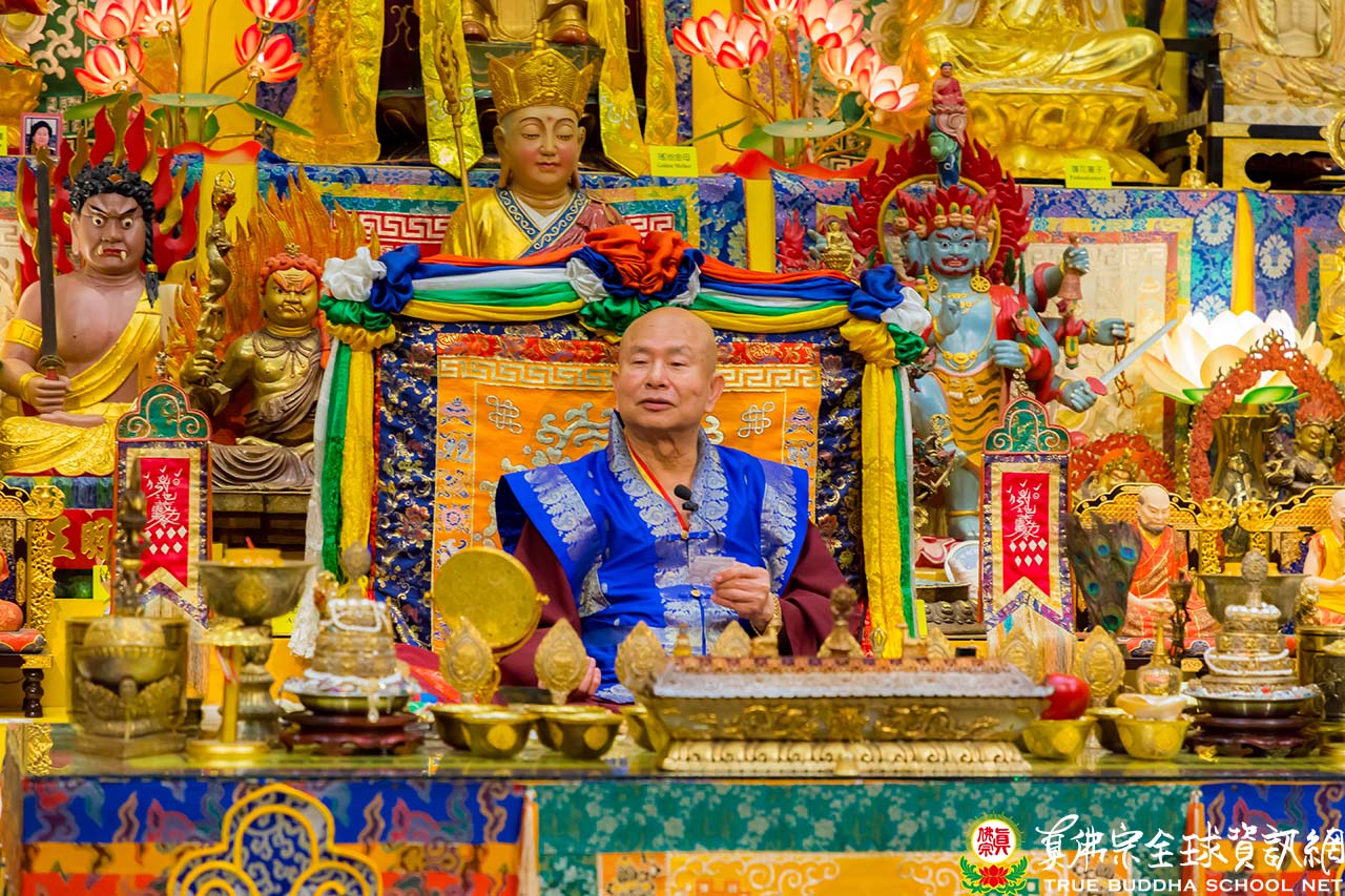 二零二一年九月十一日,聖尊蓮生活佛盧勝彥主持西雅圖雷藏寺週六同修「藥師佛本尊法」暨講解《金剛經》。
