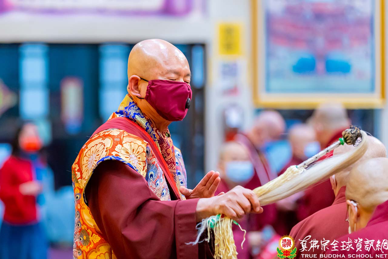聖尊精采絕倫的金剛經講釋結束後,慈悲為大眾加持大悲咒水及開光佛像,再以拂塵加持與會大眾。步出祖寺大門,秋涼如水,月色皎潔,西雅圖雷藏寺祝願師尊、師母中秋佳節健康、快樂,也祝福大家修行有如淨滿月,修持有成光明具。