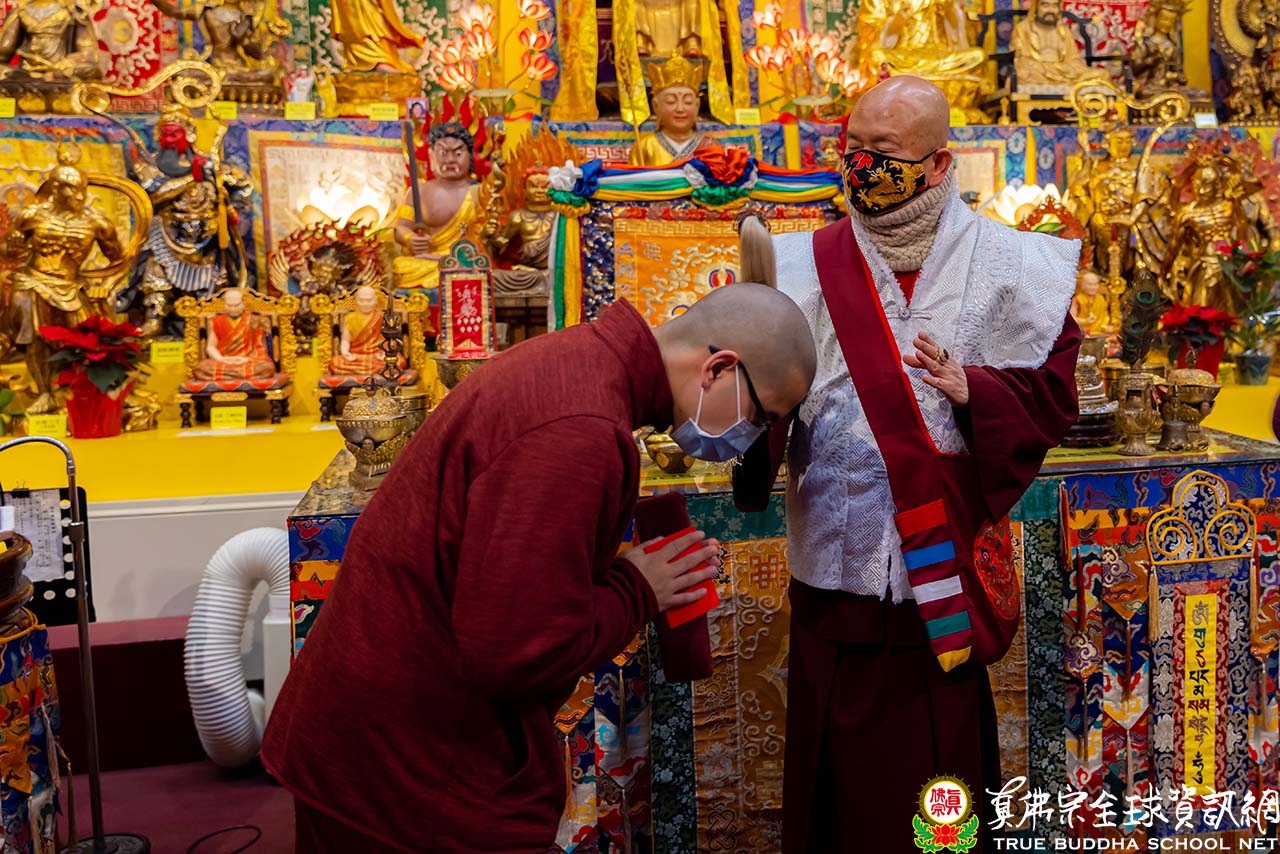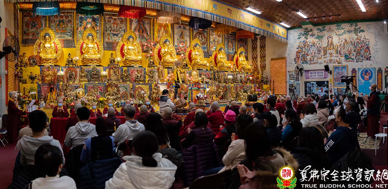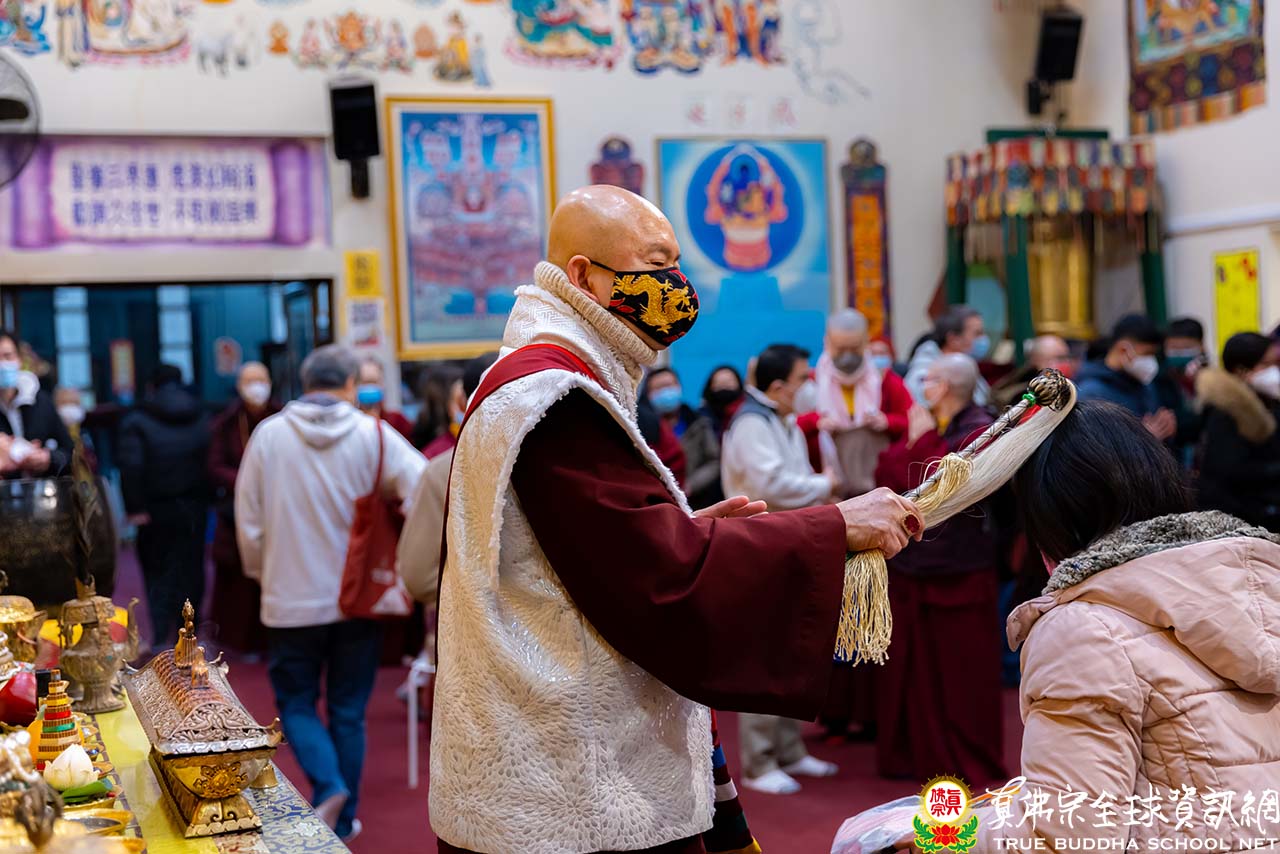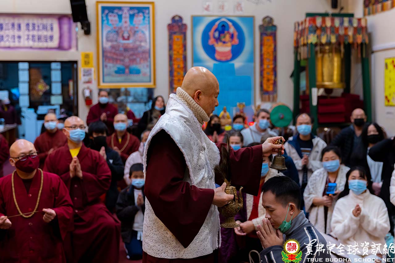 天寒地凍中,西雅圖雷藏寺燈火通明,殿內蓮花童子心咒響徹靜謐的夜,弟子們歡喜踴躍的迎接無上法王聖尊蓮生活佛盧勝彥到來,為大眾主持「蓮花童子本尊法」同修。