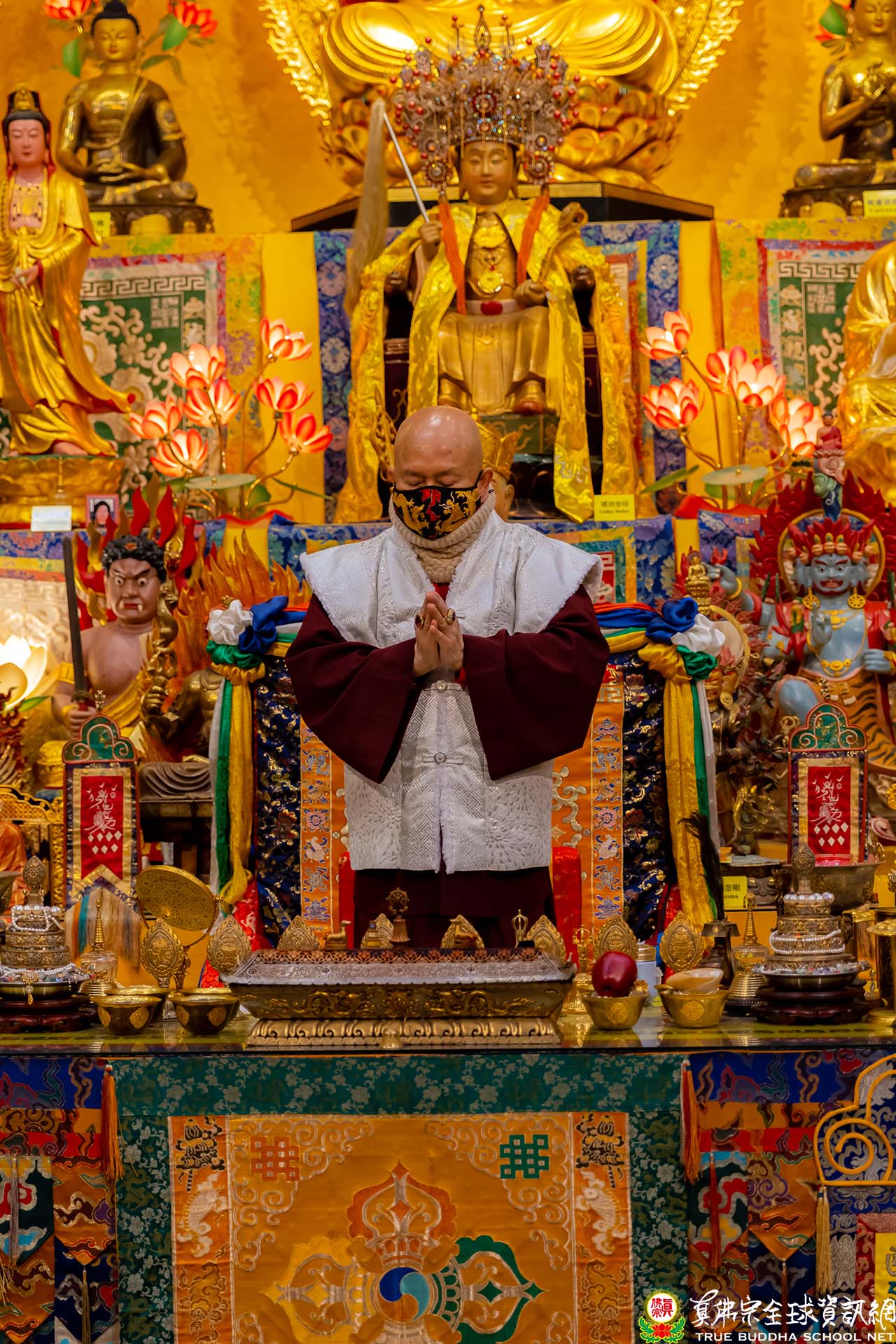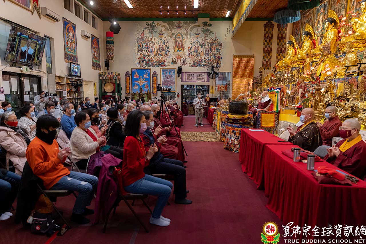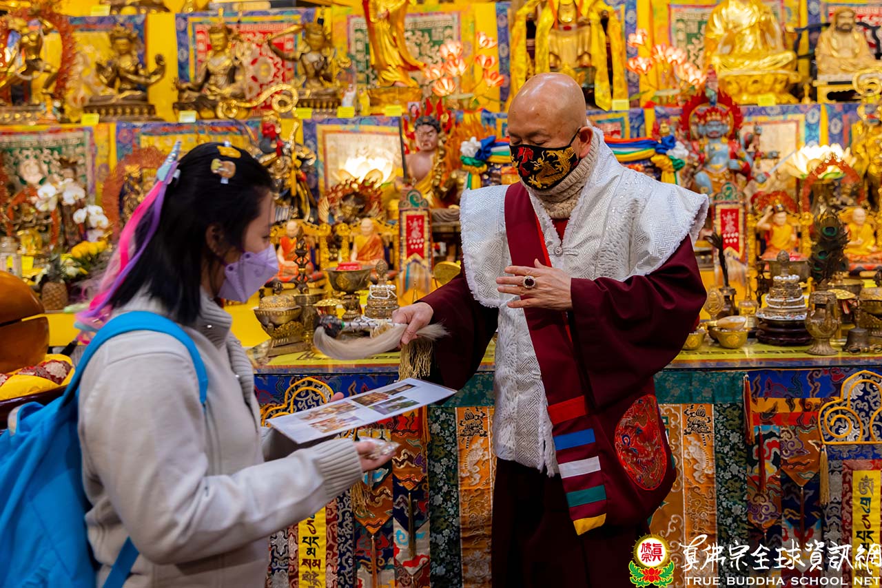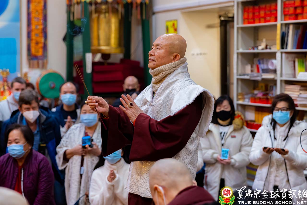天寒地凍中,西雅圖雷藏寺燈火通明,殿內蓮花童子心咒響徹靜謐的夜,弟子們歡喜踴躍的迎接無上法王聖尊蓮生活佛盧勝彥到來,為大眾主持「蓮花童子本尊法」同修。
