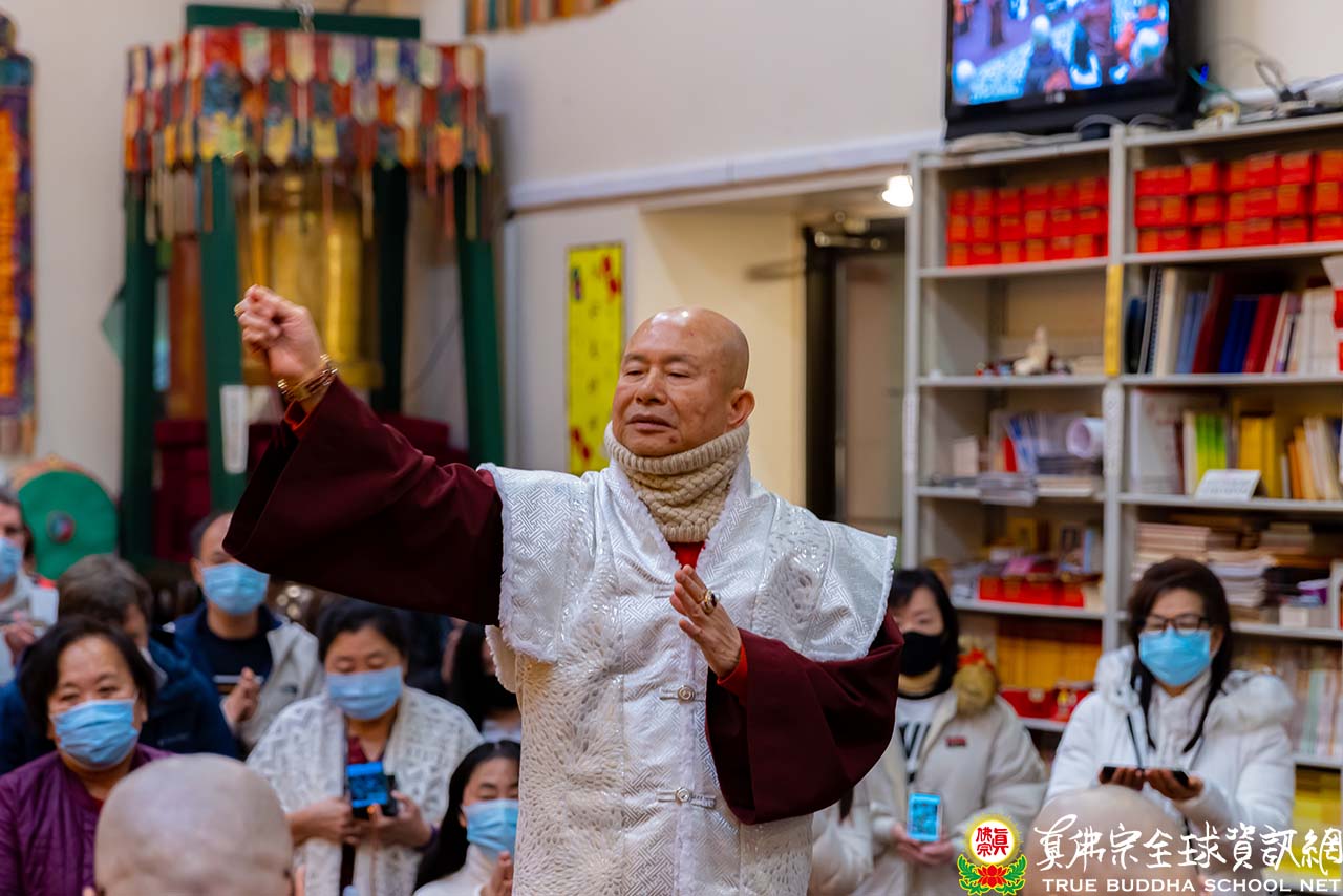 在精闢的法語開示結束後,聖尊慈悲加持現場及網路上的弟子。