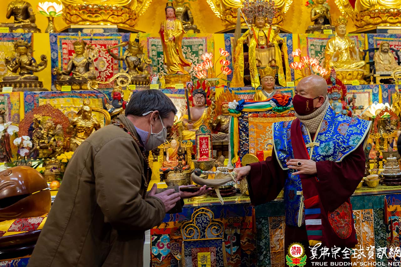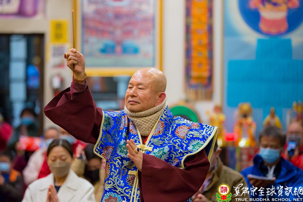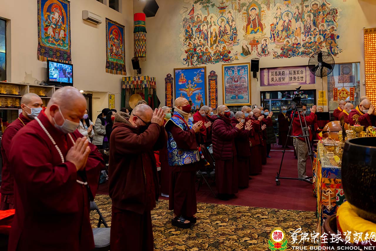 2022年1月1日星期六晚上八點於西雅圖雷藏寺,同修完藥師佛本尊法之後,蓮生活佛盧勝彥祈求藥師琉璃光王佛讓全世界的瘟疫、病毒剎那完全消失,祈請藥師琉璃光王佛放光接引有緣與無緣中陰往生琉璃光淨土,祈請藥師佛消除衆生的疾病。