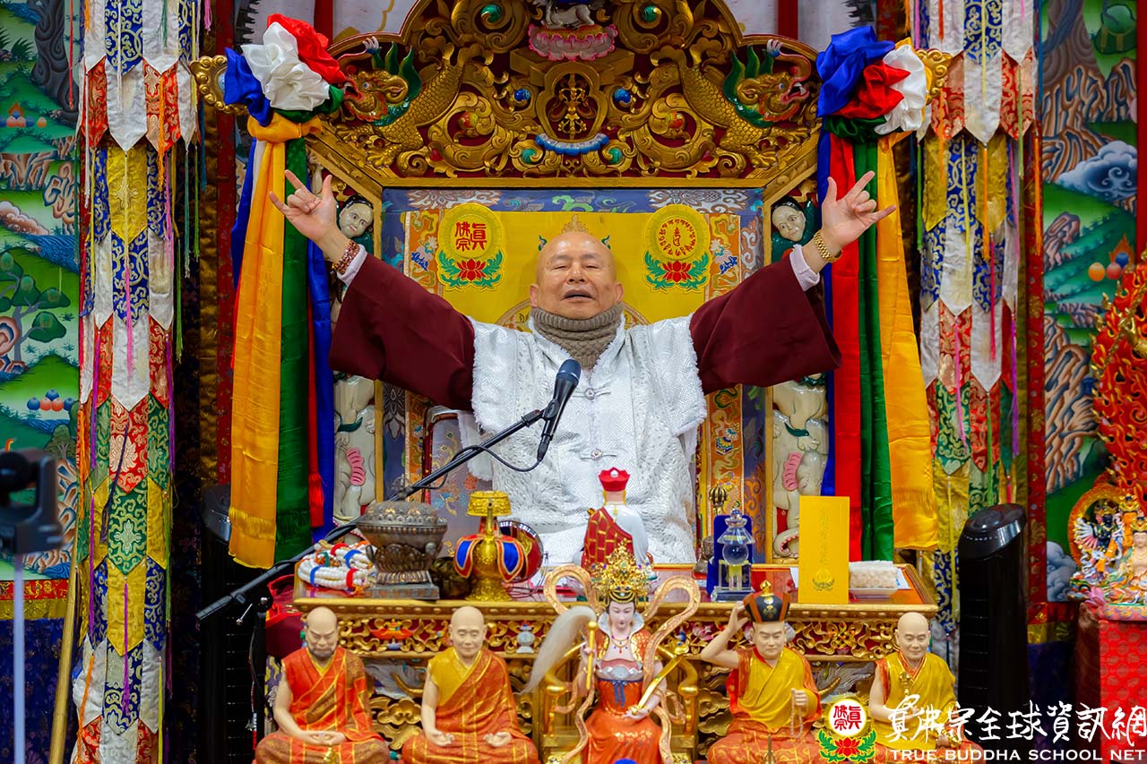 法王分享了金剛經中空的智慧後,便與大家一同欣賞來自教育處的影片。影片中記載了真佛網路大學第一門課【包羅萬象的佛學】課程的進步,護持真佛教育的弘法人員及學員都呈現在畫面中,令人欣喜讚歎。