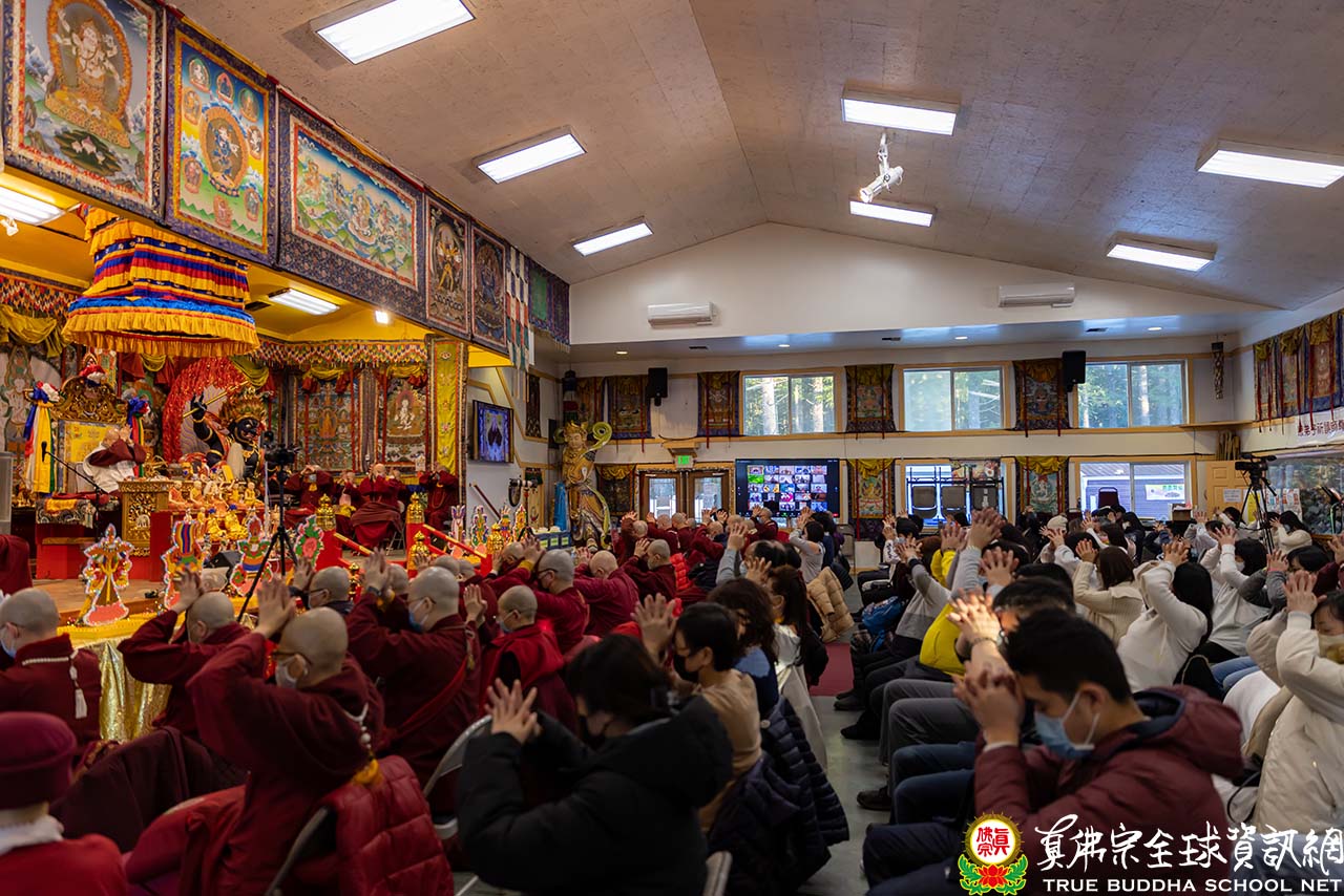 2022年1月9日下午三點,西雅圖的天氣依舊寒冷,但無阻弟子們參與法會的熱情與期待。法會開始前,大會司儀特意叮囑大家注意地滑,小心安全。隨著車子緩緩駛來,大家立即各就各位,恭迎最尊敬的根本傳承上師聖尊蓮生法王。法王帶領大眾頂禮壇城後,便與Zoom上弟子互相問好。隨後,司儀恭請法王上法座,蓮花童子護摩法會正式開始。