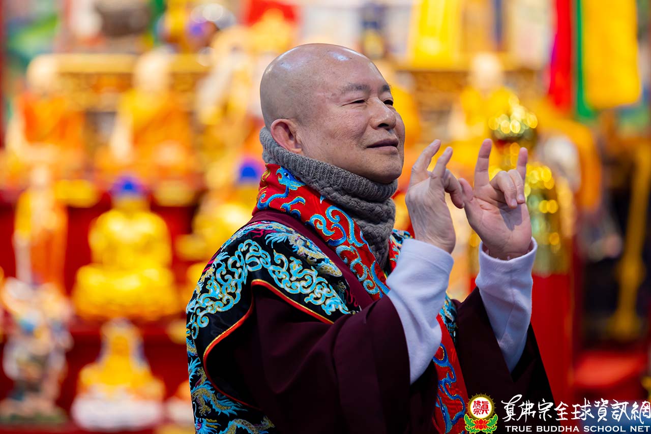 法王表示,今天的主尊「大力金剛」威靈顯赫,只要一比手印,馬上就下降,是真佛宗特聘的大護法。拂塵代表瑤池金母,金剛棍代表蓮花童子,頂上是阿彌陀佛。其本身就是地藏菩薩六侍者中的大力侍者,所以是瑤池金母、阿彌陀佛、地藏菩薩、大力侍者和蓮花童子,五合一的大護法金剛神;持棍可以打暈怨敵,持索可以捆綁怨敵,拂塵可以消除業障,手結期克印表示降伏一切,是故威力無窮。法王說,希望以後同門都要護持大力金剛法會,因爲祂是真佛宗的特聘大護法。法王指出,其右手的大拇指上,就有大力侍者的標志,是地藏菩薩請祂來護持真佛宗的。