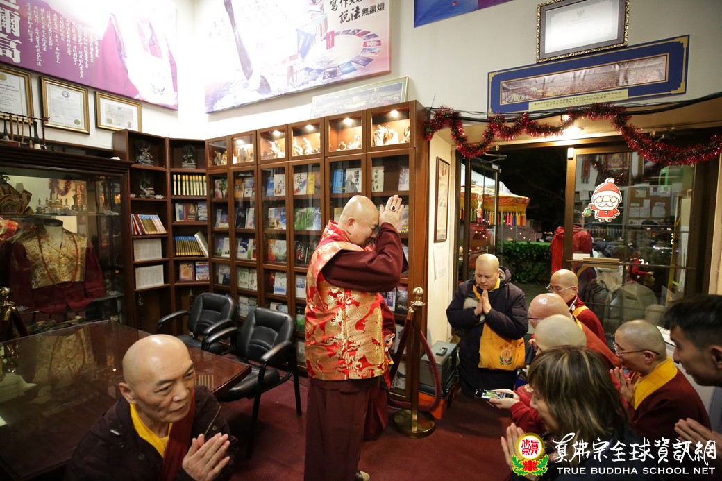 本周六祖廟同修的是阿彌陀佛本尊法。在莊嚴圓滿的修法結束後,聖尊首先談到一則讓大家雀躍的真實感應。聖尊談到祂在11月10日主壇彩虹雷藏寺黃財神護摩時,曾於開示中談到吐寶鼠在虛空中吐出四袋的鈔票,當時聖尊就預言一定會有人中獎。聖尊說道,真佛宗是中獎宗,在過去有好多的弟子中過美國的大樂透、台灣的威力彩,或其他國家如新加坡、馬來西亞等,都有人中大獎。