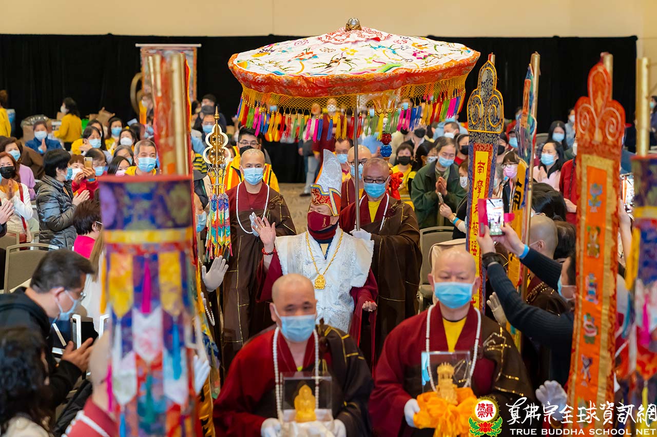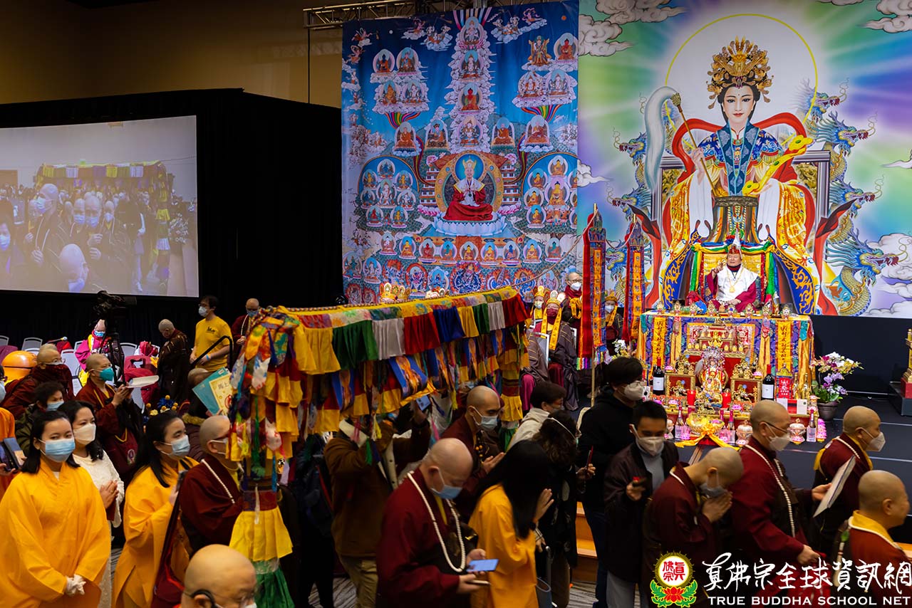 法會最後,聖尊賜授「瑤池金母本尊法、瑤池金母八大法及瑤池金母馬上有錢法」灌頂給與會大眾,美國西雅圖雷藏寺壬寅年新春祈福大法會圓滿結束。感謝全球各地線上與親臨之所有真佛宗各級弘法人員、貴賓、同門善信共襄盛會,亦由衷感謝所有鼎力協助的弘法人員與義工同門。歷經兩年的新冠疫情,根本上師給予的不只是珍貴佛法的教授與傳承法流的加持,更是使我們的心有所依止,不致散亂。