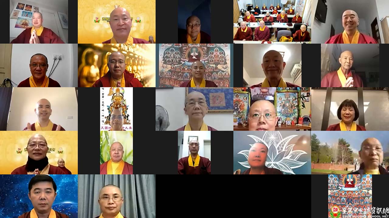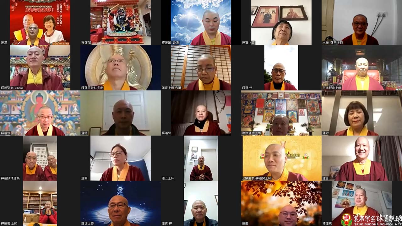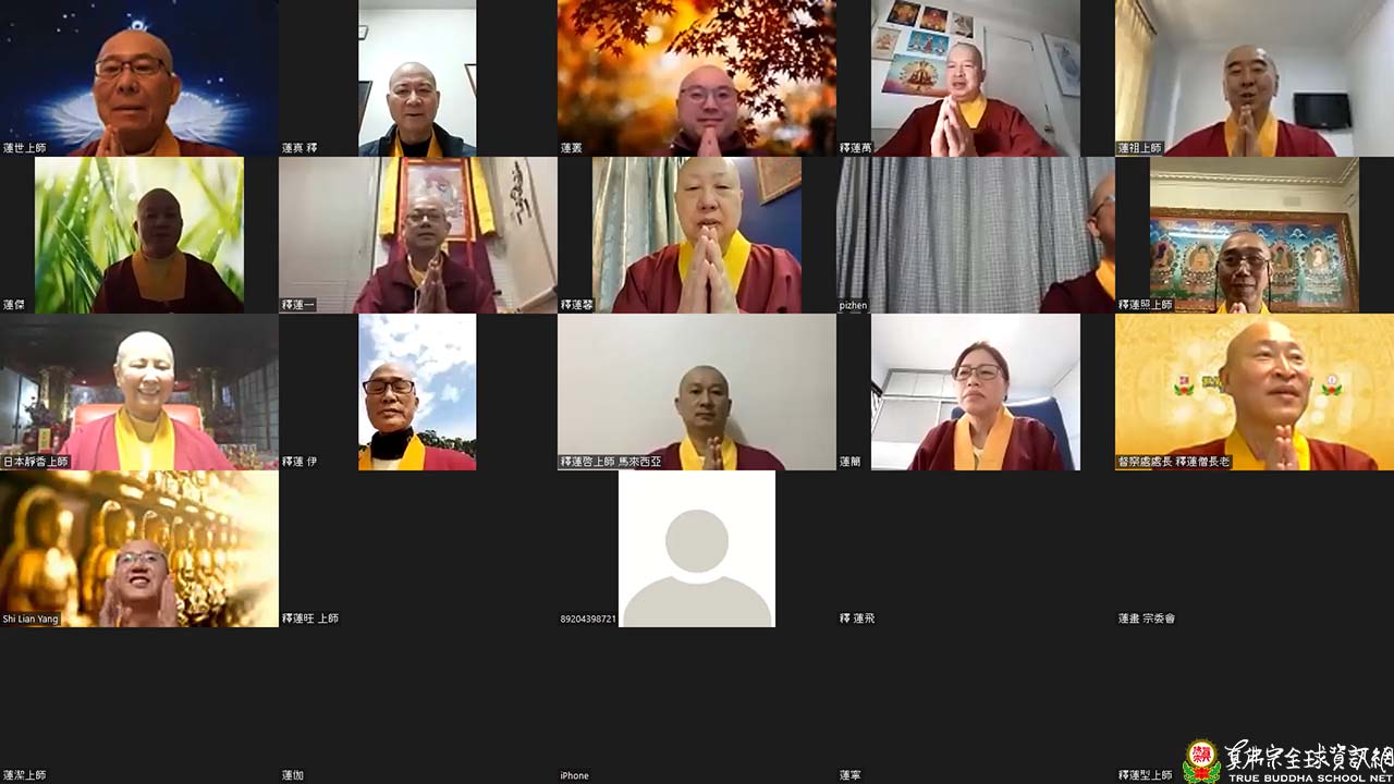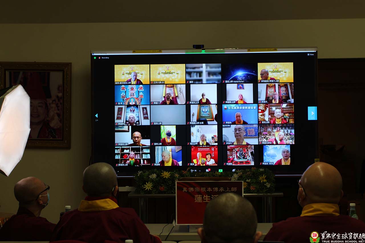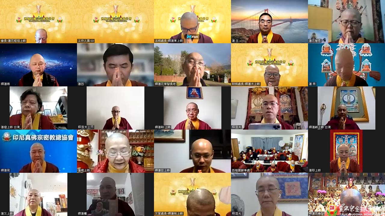 在圓滿咒之前,由會長程祖上師做總結。歷時兩天的雲端會議,經由各處長的報告後,讓大家明瞭目前宗派推動方向。「真佛宗功德總會」將暫時由會長蓮花程祖上師帶領,程祖上師本身是企業家,以此豐富的經歷帶動「真佛宗功德總會」,現時可謂是最適當人選。而「宗務發展促進會」則暫時由釋蓮僧長老領導,在報告之中可以看出蓮僧長老的思緒周全,能夠從宏觀角度出發,細膩之處著手,相信不論是「真佛宗功德總會」或「宗務發展促進會」,在會長蓮花程祖上師及蓮僧長老的帶領下,定能穩定蓬勃發展,為宗派的「財」與「才」奠定良好基石。