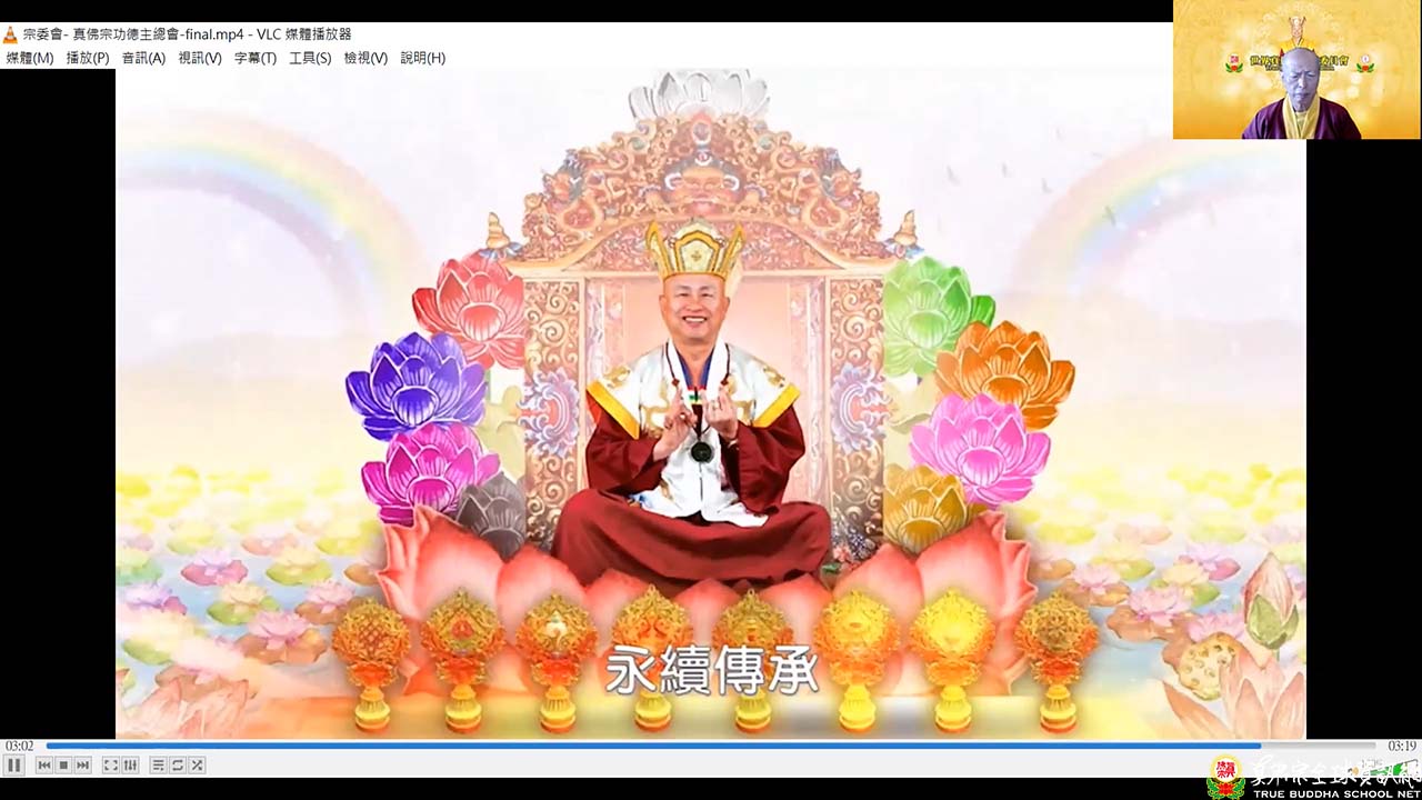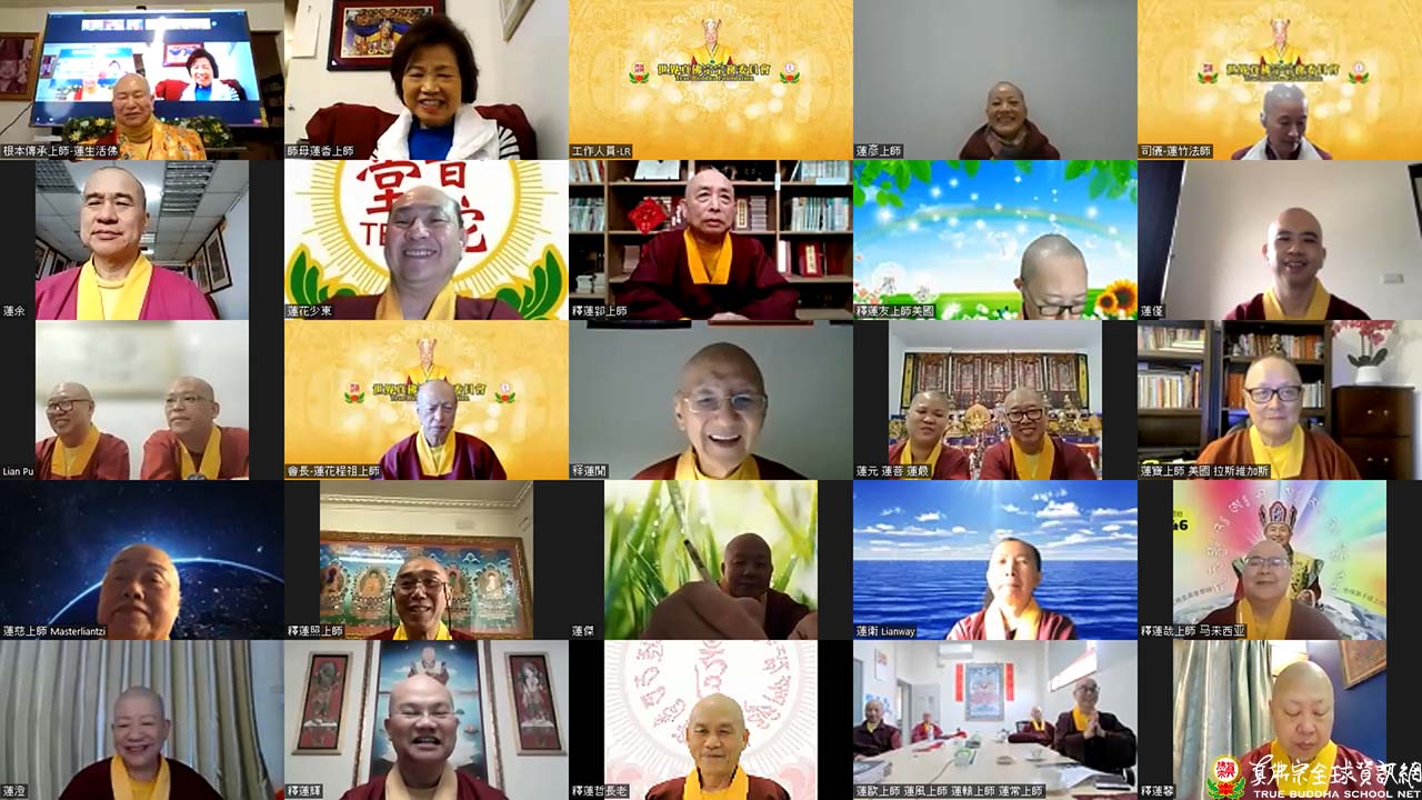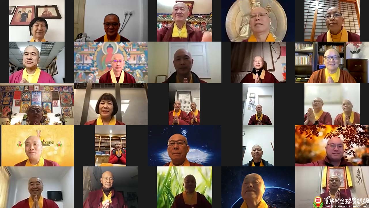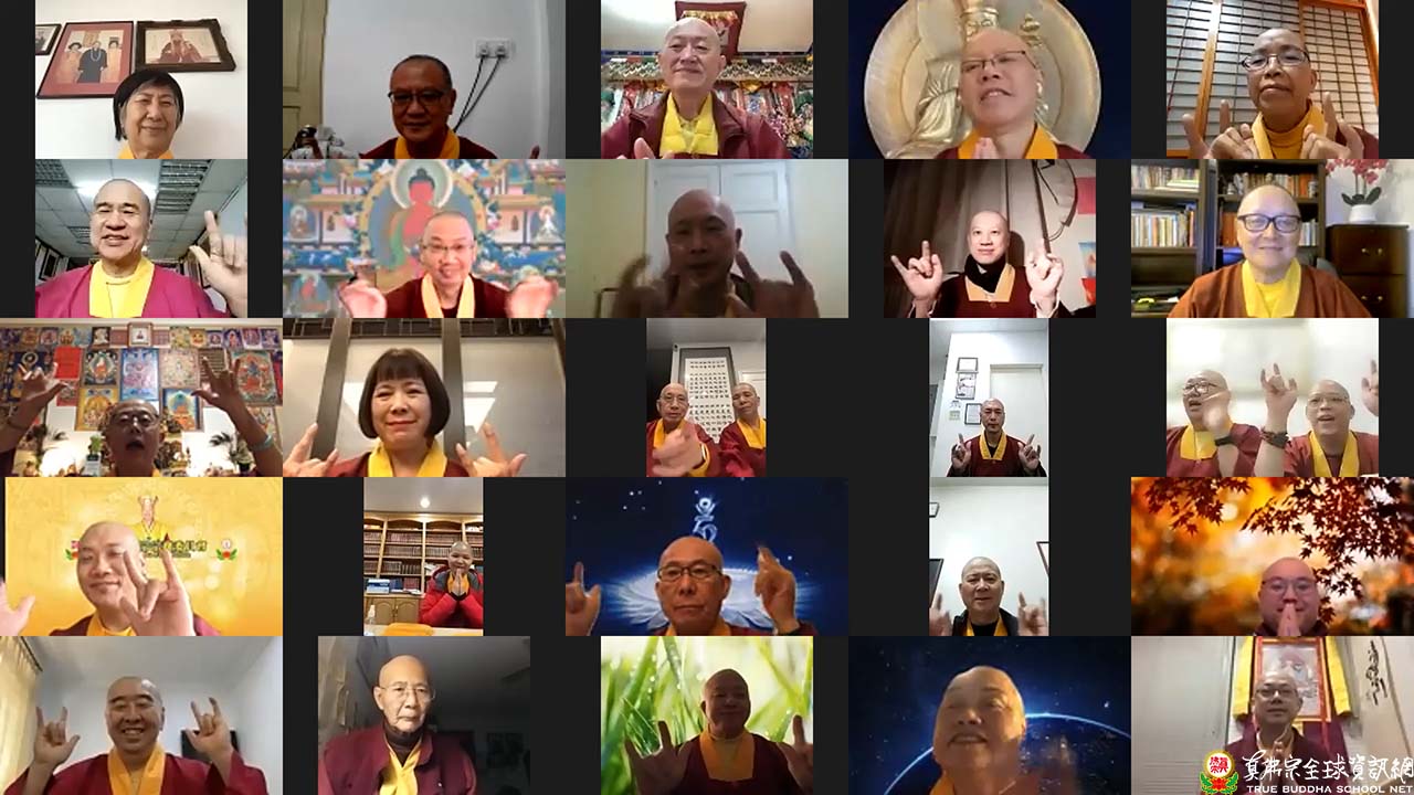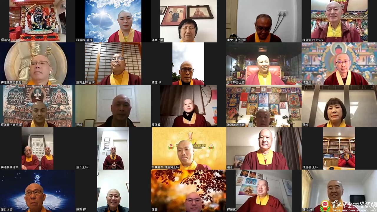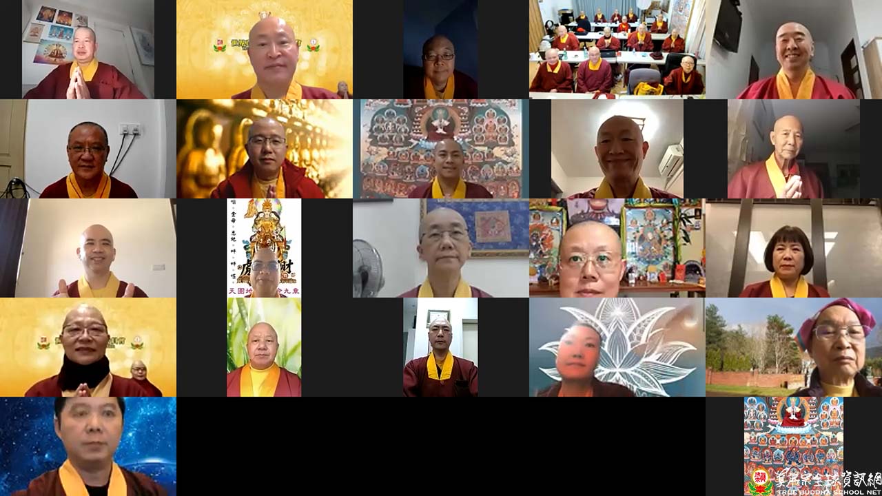 在圓滿咒之前,由會長程祖上師做總結。歷時兩天的雲端會議,經由各處長的報告後,讓大家明瞭目前宗派推動方向。「真佛宗功德總會」將暫時由會長蓮花程祖上師帶領,程祖上師本身是企業家,以此豐富的經歷帶動「真佛宗功德總會」,現時可謂是最適當人選。而「宗務發展促進會」則暫時由釋蓮僧長老領導,在報告之中可以看出蓮僧長老的思緒周全,能夠從宏觀角度出發,細膩之處著手,相信不論是「真佛宗功德總會」或「宗務發展促進會」,在會長蓮花程祖上師及蓮僧長老的帶領下,定能穩定蓬勃發展,為宗派的「財」與「才」奠定良好基石。