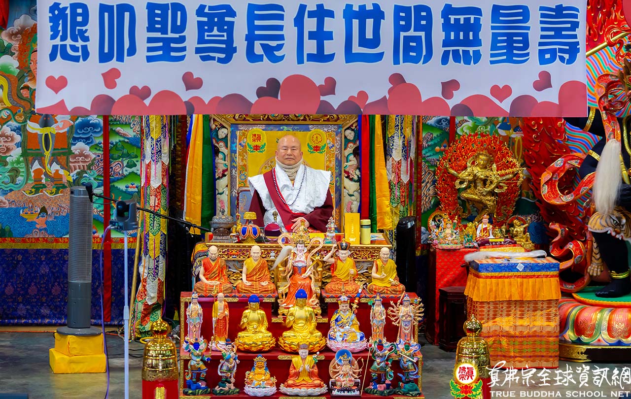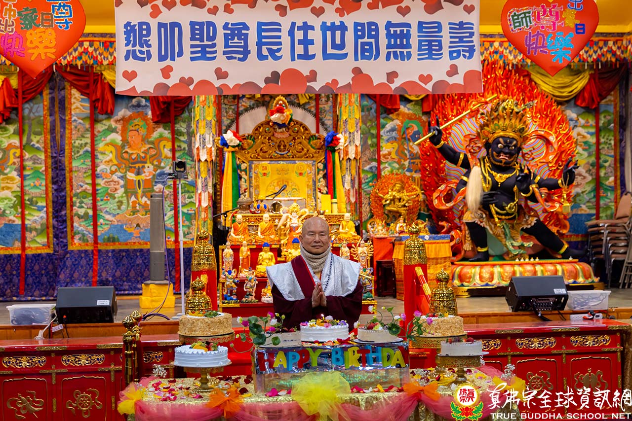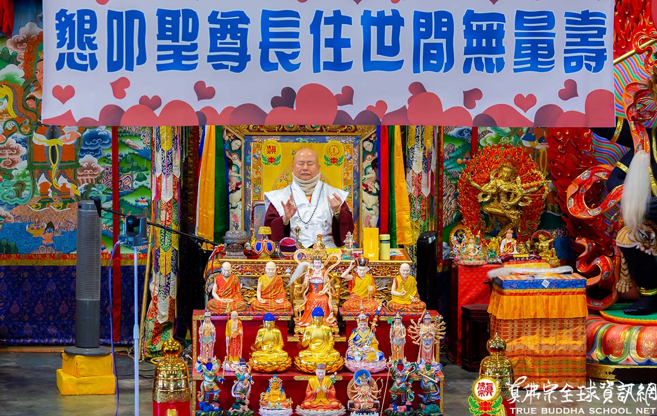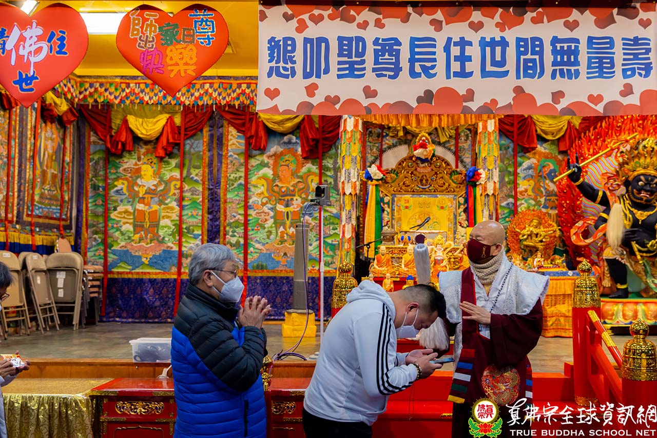 法會後,彩虹雷藏寺為法王準備了精美的蛋糕慶祝這個美好的日子,彩虹雷藏寺代表也獻上了美麗的鮮花及供養。之後大家又以一曲「感恩師尊」用手語的表達來呈現對聖尊的感恩。這首歌深深的打動了法王以及現場及網路、zoom線上的所有弟子,大家沉浸在這幸福的氣氛中留下了感動的淚水。儘管弟子們都在努力的學習「過去心不可得,現在心不可得,未來心不可得」,但還是祈願此時此刻的美好,留在弟子們的記憶中天長地久。最後,法王為現場的弟子們做了蓮花童子灌頂,法會在無限的感動及喜悅中圓滿落幕。