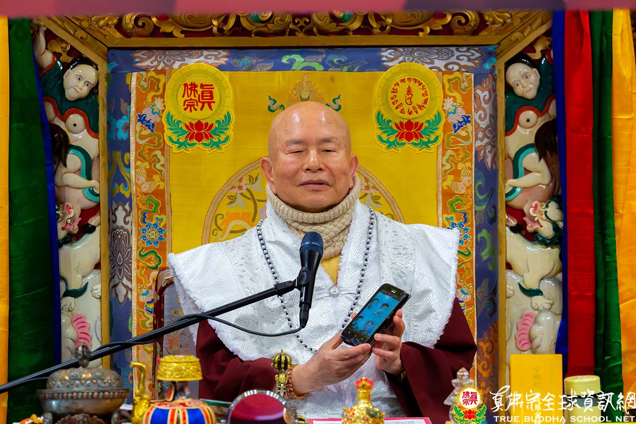 儀式結束後,法王眼中閃著淚光,聲音哽咽低沉地為大眾做寶貴的法語開示,首先先介紹了下個星期日的護摩主尊是:不空羂索觀世音菩薩。此尊菩薩非常偉大,令一切的所求不落空,所以有很多的弟子向這尊菩薩祈求,非常靈驗。