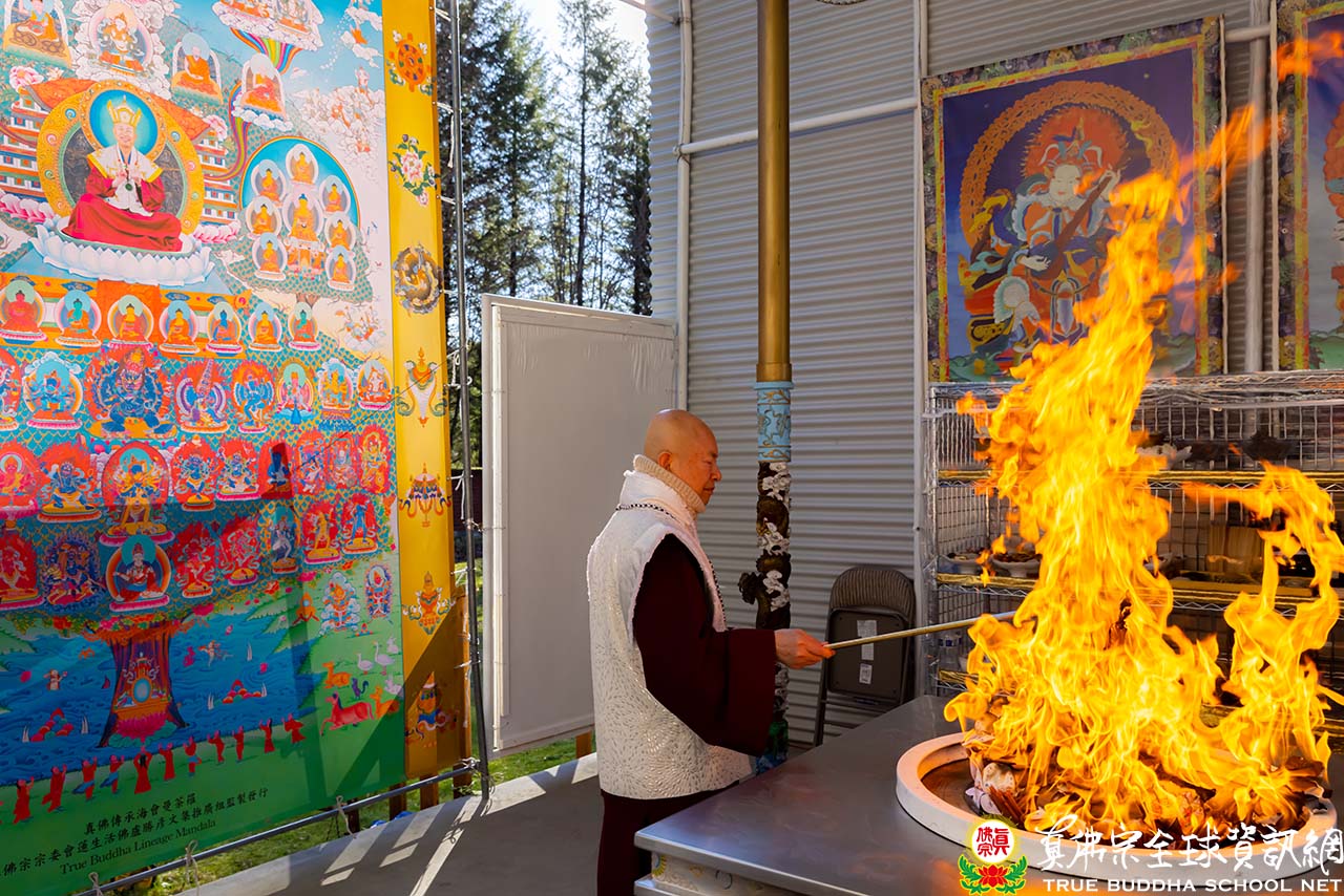 2022年03月06日下午三時,彩虹雷藏寺舉行了殊勝的大白蓮花童子護摩大法會。為慶祝聖尊蓮生法王出家36週年及請佛住世,宗委會舉辦了一系列活動。當天是個令人難忘的日子,全球真佛弟子一心至誠、請佛住世。護摩法會殊勝圓滿,護摩火熊熊燃燒,傳承的法流源源不斷。