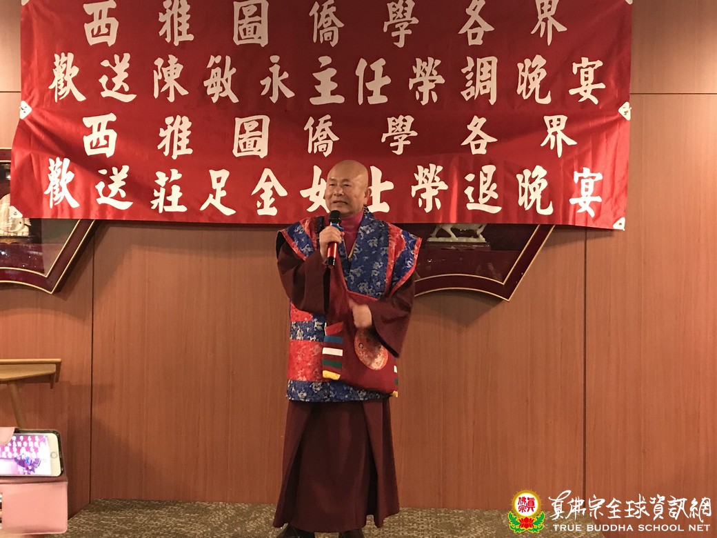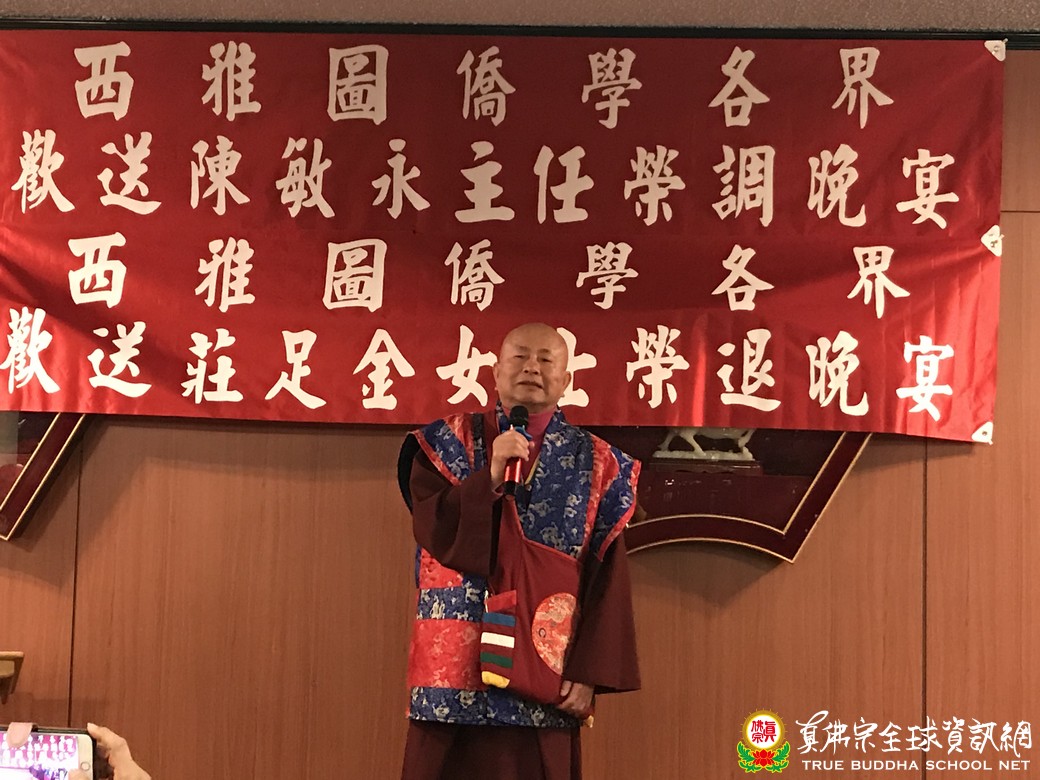 2019年12月27日,蓮生活佛應邀參加西雅圖僑學各界歡送西雅圖華僑文教服務中心陳敏永主任榮調,暨駐西雅圖台北經濟文化辦事處莊足金女士榮退的晚宴。