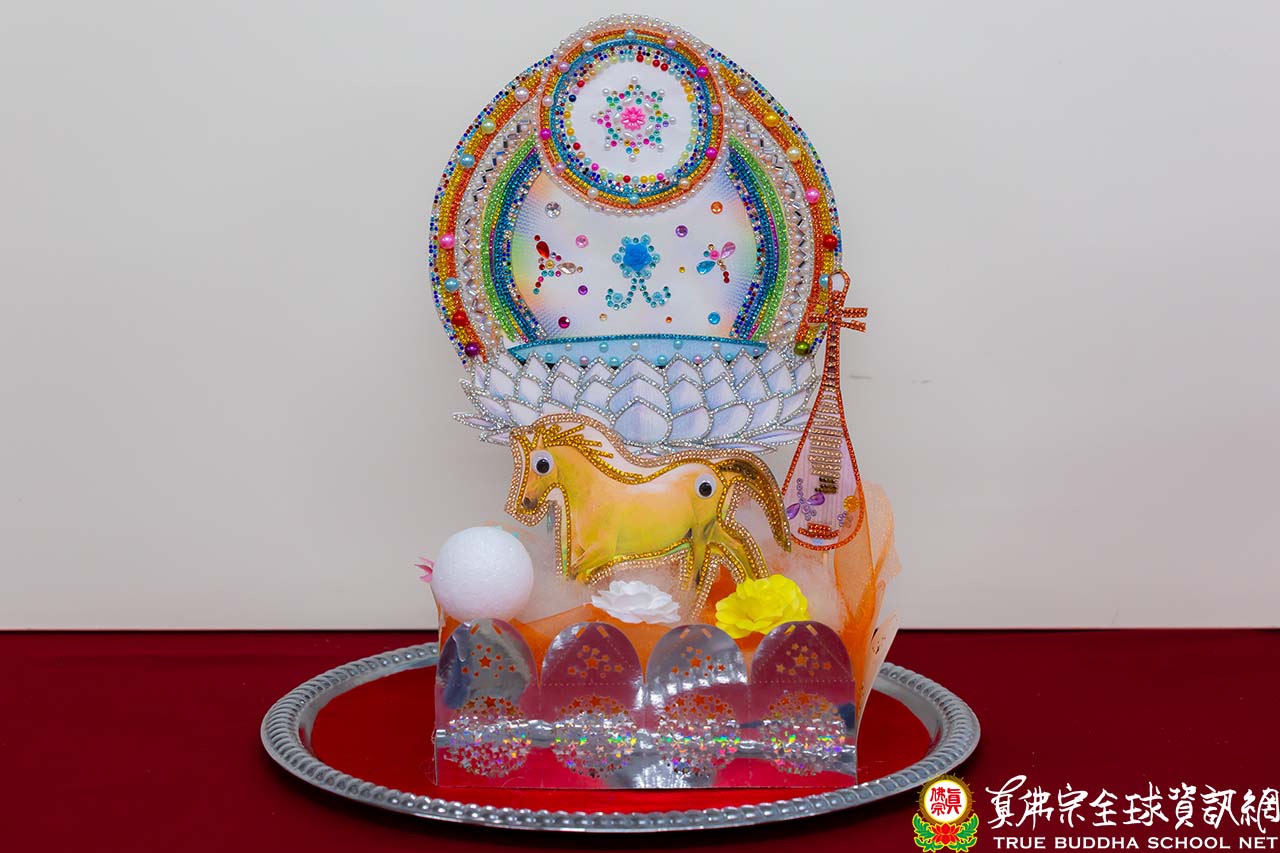 法王曾經傳授吉祥天結繩守護法,以五色線持「大吉祥天咒」,然後打十二個結,後將五色線綁於腰際,有守護的作用。《金光明經》中有《功德天品》,介紹大吉祥天;另外有《最勝王經》,裏面有記載大吉祥天女品。另外有《佛說吉祥天女十二名號經》,與《佛說大吉祥天女十二契一百八名無垢大乘經》,都記載了十二吉祥天的名號。而法王也曾经畫過十二吉祥天女之畫像,並將之贈與宗委會做籌募經費之用。(現場屏幕上也展示了法王所畫的十二吉祥天女相,每一尊都非常漂亮!)