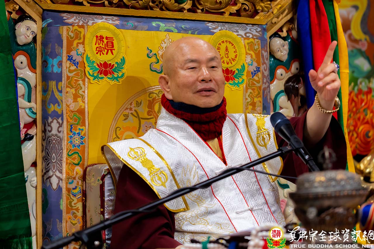 法王也提到近期在安立一尊時輪金剛相時,時輪金剛給予的教示:「要勸所有的弟子不要去聚財,聚了財,不是被偷,就是被搶,不然就會生起很多不吉祥的事。」法王說,「但是天下人都愛錢,沒有不愛的。時輪金剛的意思是,『愛錢可以,但是要取之有道,要適可而止,而且要多做布施。』這是時輪金剛的教示,因為聚集太多的財富,會變成禍根。」法王也分享了一些趣事,之前家中常會有莫名的響聲雜音,自從時輪金剛相安立的那一天開始,家中所有的鬼眾都消聲覓跡,一切寂靜。
