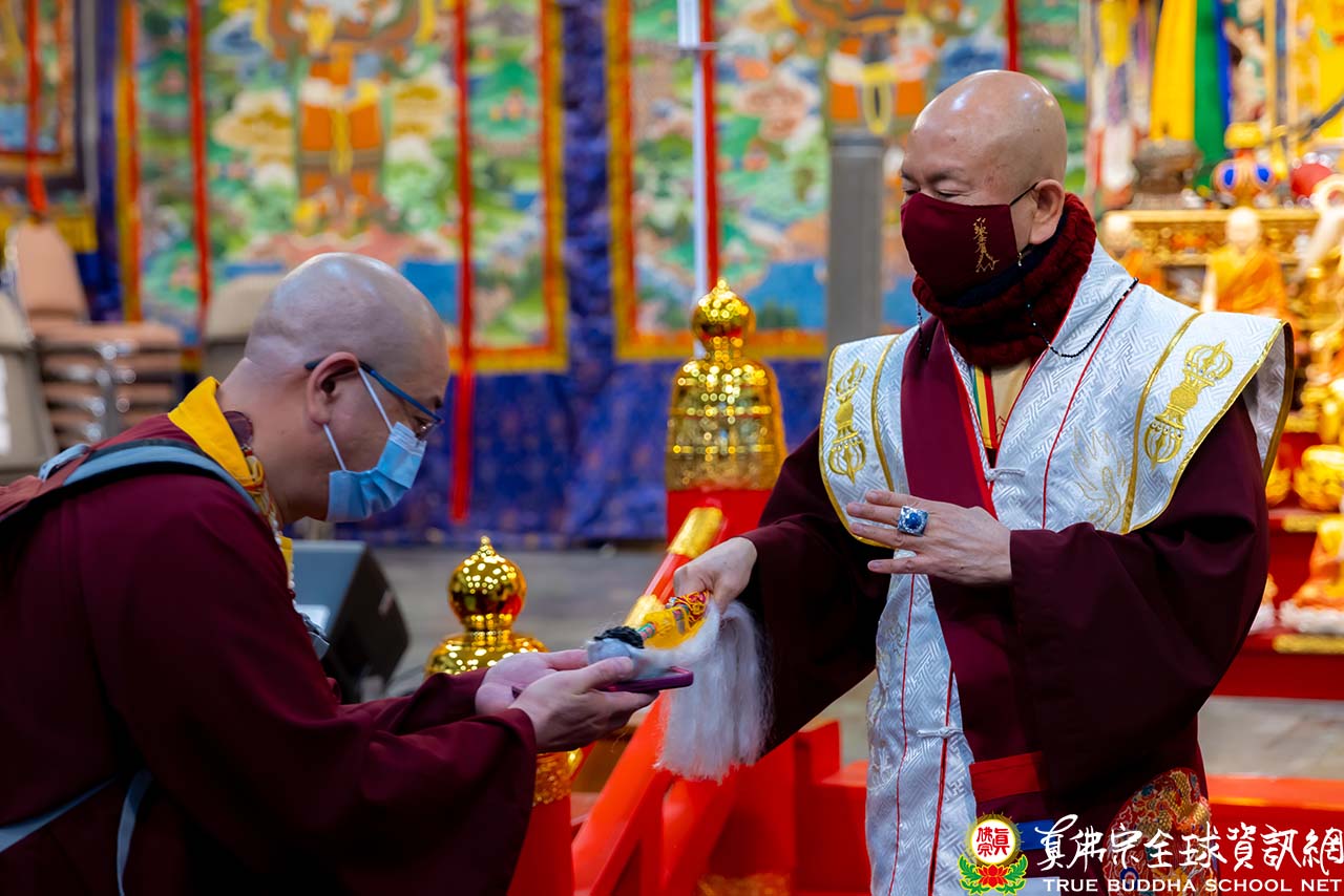 法王開示完畢,也象徵著大吉祥天女護摩法會的圓滿結束。禮拜壇城後,法王與眾多線上弟子揮手祝福,眾等無不歡喜感恩!法王賜授在場弟子大吉祥天女灌頂,法會圓滿結束。