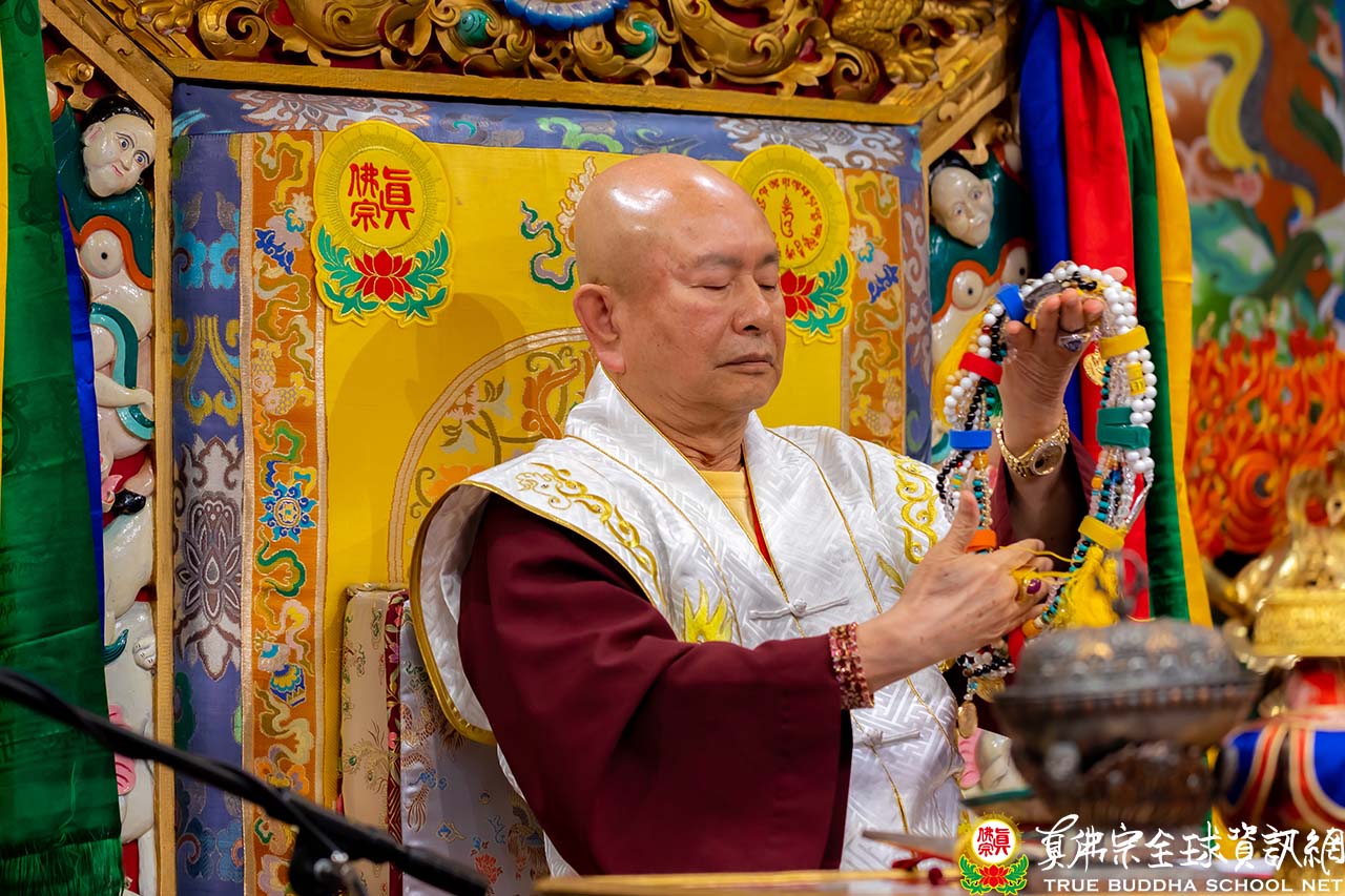 法王結束精彩的法語開示後,便與Zoom上弟子一一道別。隨後,法王賜授現場與會大眾「千手千眼觀世音菩薩法」灌頂,是日法會便完滿結束。