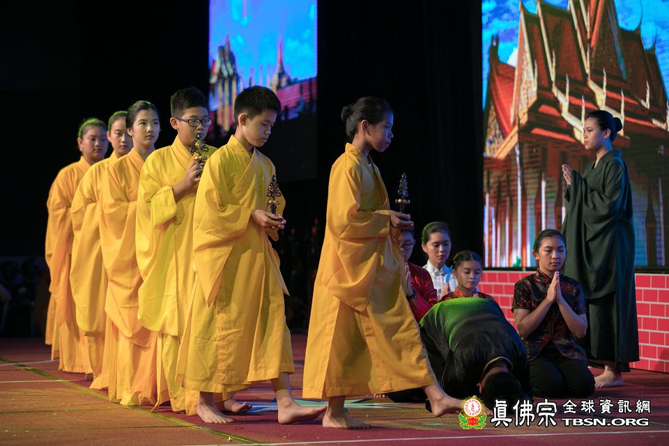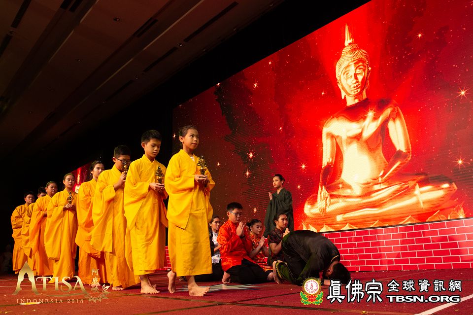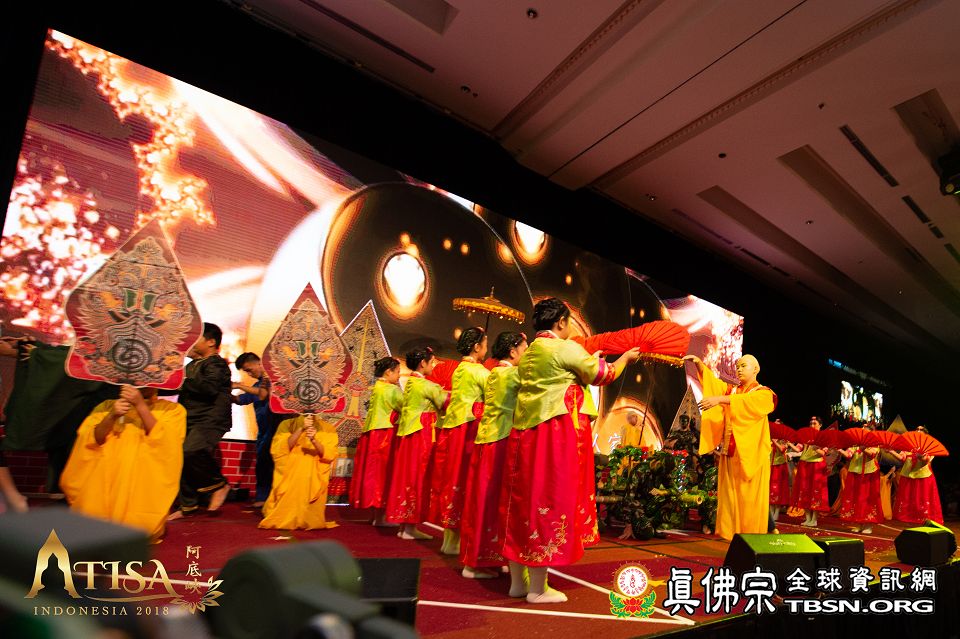 最後,聖尊應邀致詞,聖尊感謝今天晚上的主辦單位、也感謝華光印尼敬德學校。聖尊稱讚他們唱歌都非常好聽,並表示佛教學校在印尼能夠成功,真是不容易。聖尊希望這所學校的精神能夠發揚全世界。聖尊覺得敬德學校的學生人人精神煥發、充滿朝氣,他今天晚上看到這一幕,非常感動。最後,聖尊再次謝謝華光印尼敬德學校,其校長與老師承辦此學校,非常好。