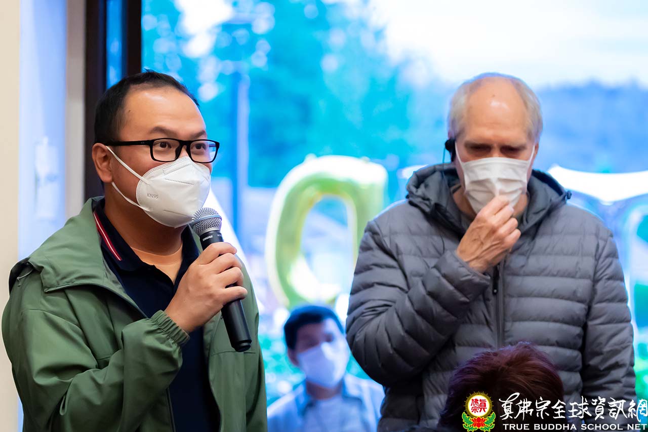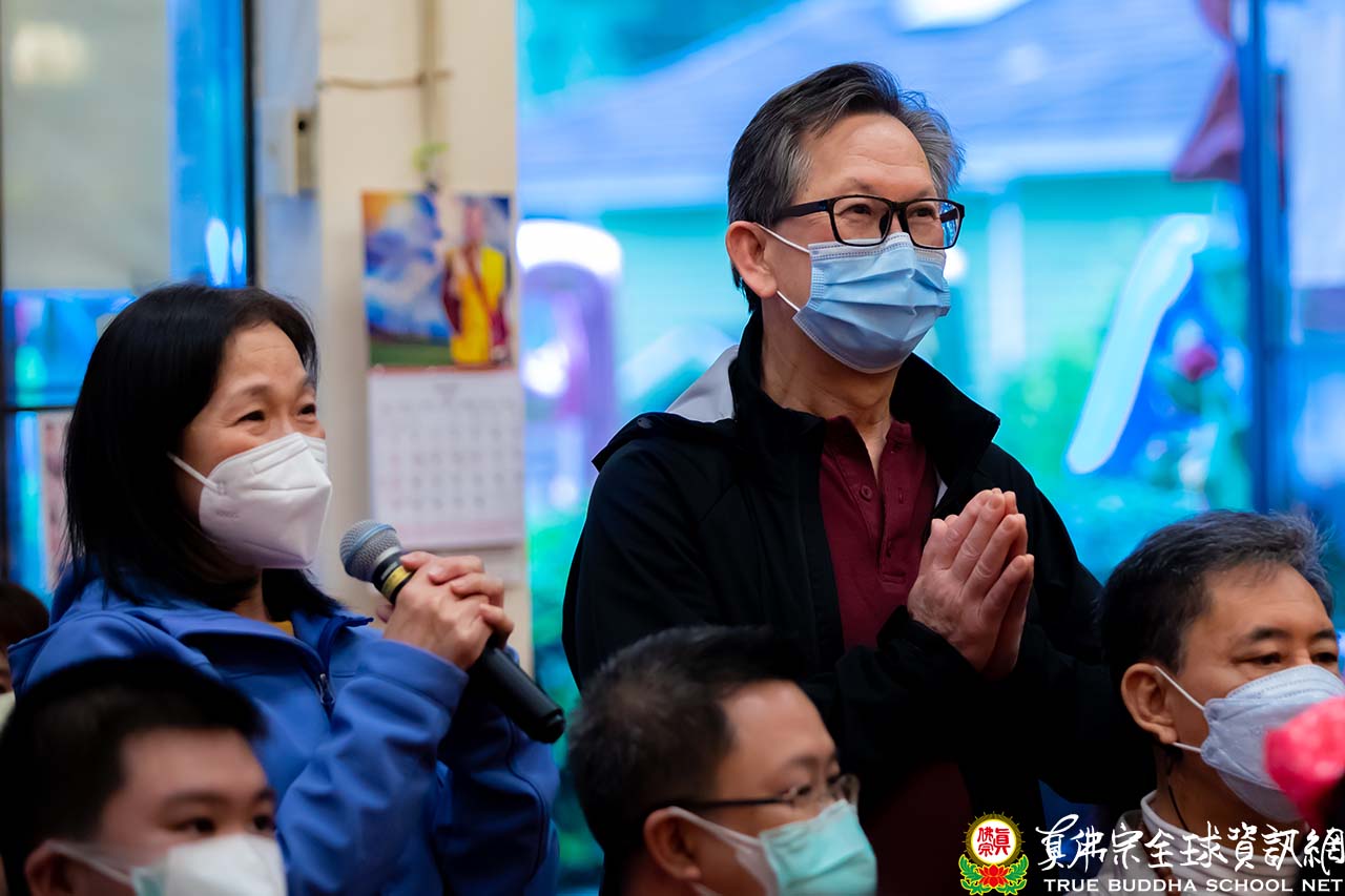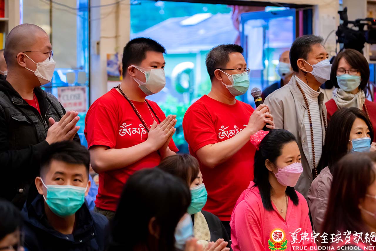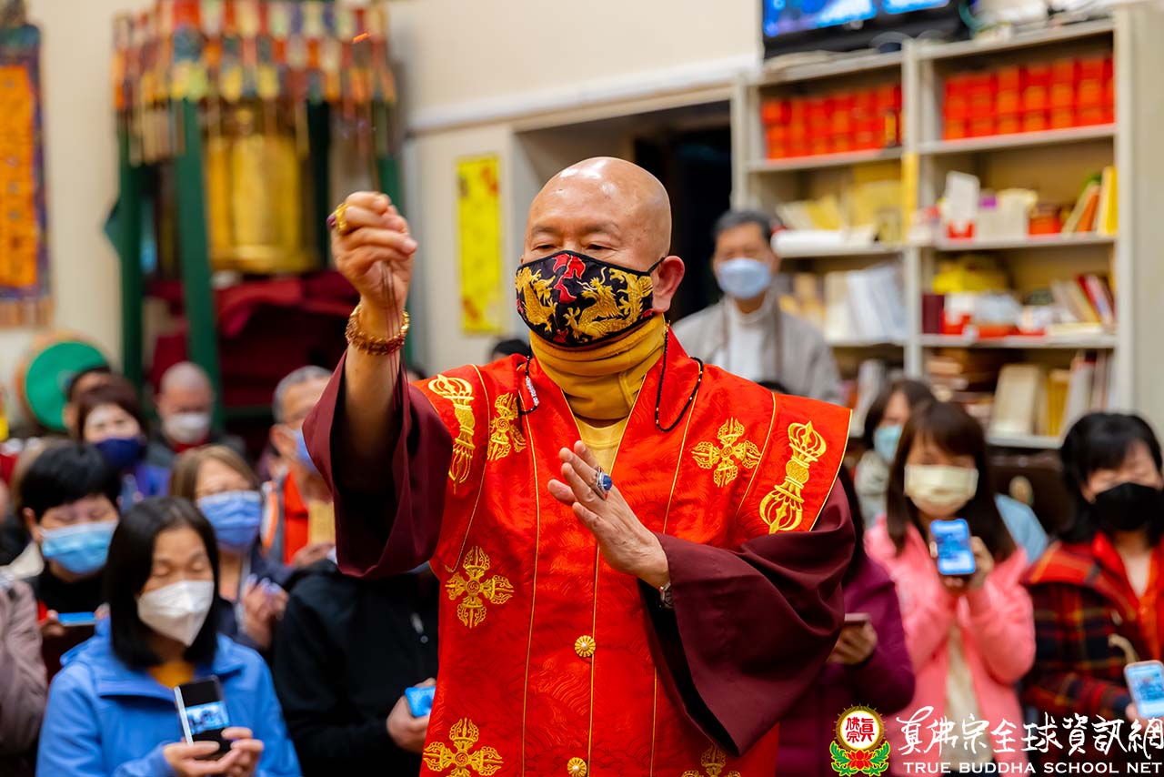 精彩寶貴的法語開示後,聖尊慈悲賜授新同門皈依灌頂、加持大悲咒水暨開光佛像,並以拂塵一一加持眾人。