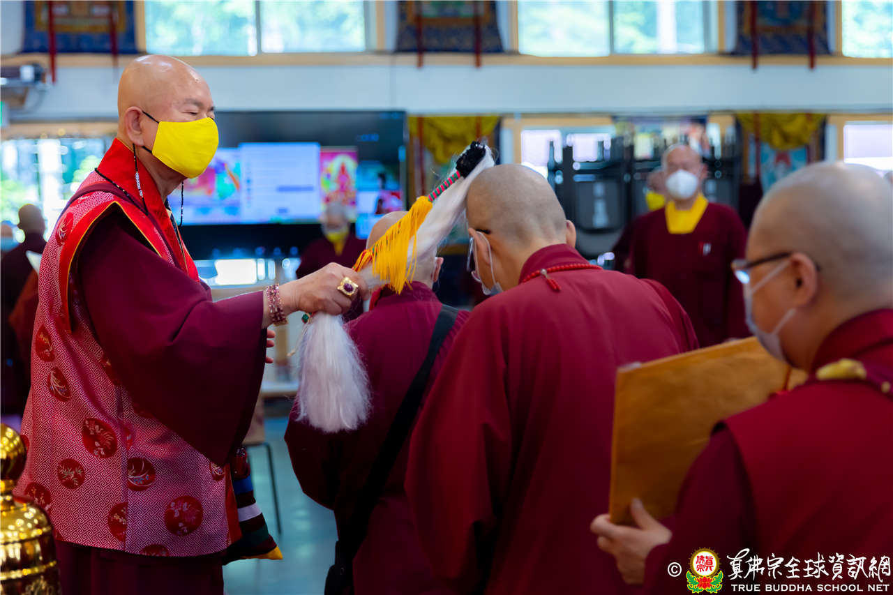 法王勉勵大家永不退轉,在任何人事時地物中,都能以佛法度眾,昔日六祖惠能「藏匿」獵人行伍15年,爾今法王在「舞林」之中翩然度眾,都是美談。最後法王移駕到Zoom前與弟子們互動,弟子們誠摯地感恩師尊開示。法王給予現場弟子勾財天女法灌頂,法會圓滿結束。
