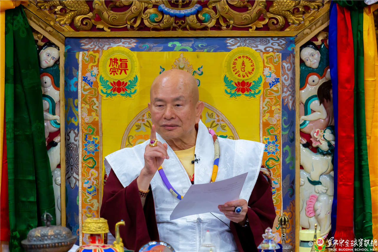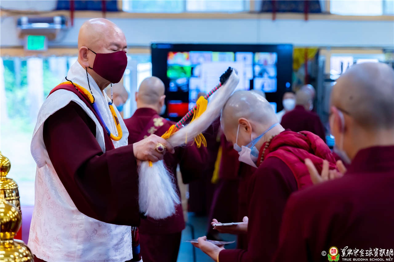 菩薩的四無畏,就是以上四點。法王語重心長的告誡弟子們要守戒,精進及懂得感恩。聖尊的法語讓弟子們深思反省,法味濃濃。法會後聖尊與Zoom線上的弟子們揮手告別,但願不久的將來就是重逢的季節。最後法王為現場的弟子們做了觀世音菩薩法灌頂,法會就此圓滿落幕。