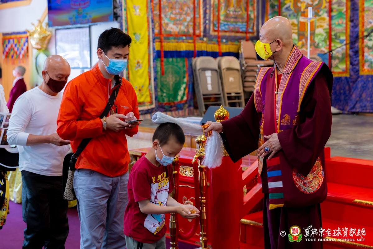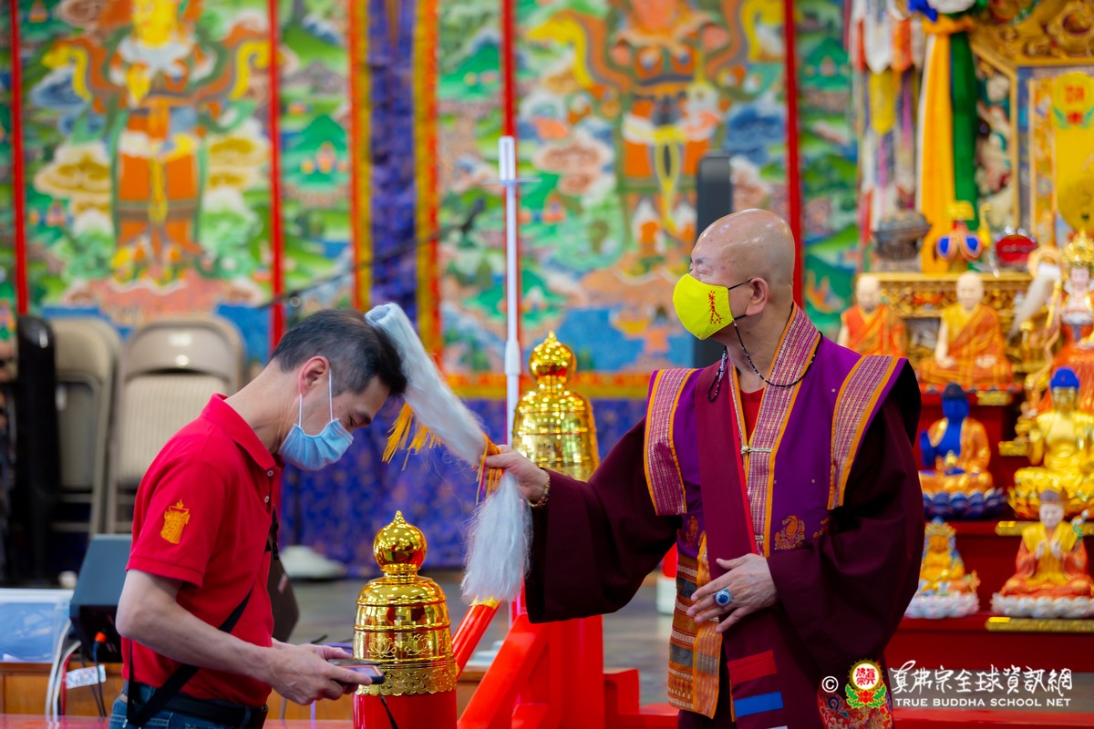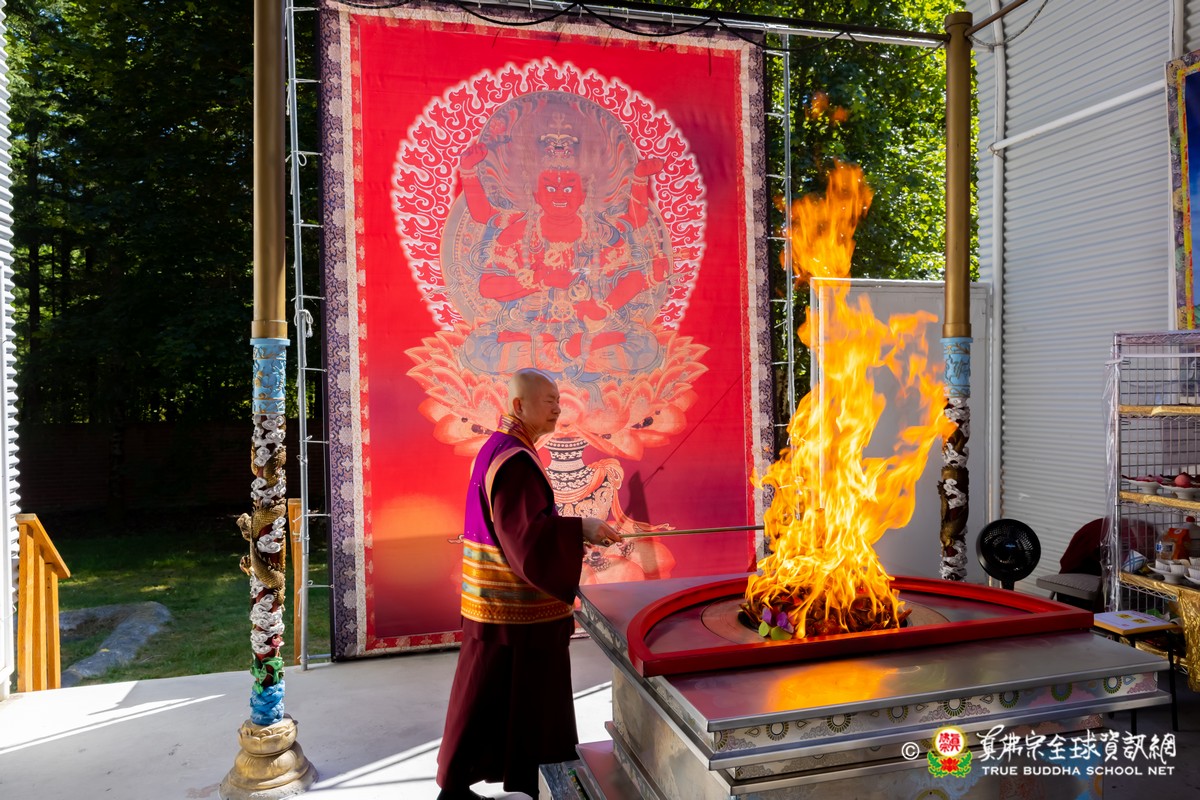 開示結束後,法王帶領大眾頂禮壇城,然後與Zoom雲端的弟子溫馨道別。接著,法王給現場與會大眾賜授「愛染明王法」灌頂,殊勝的愛染明王護摩法會在灌頂結束後也圓滿落幕。