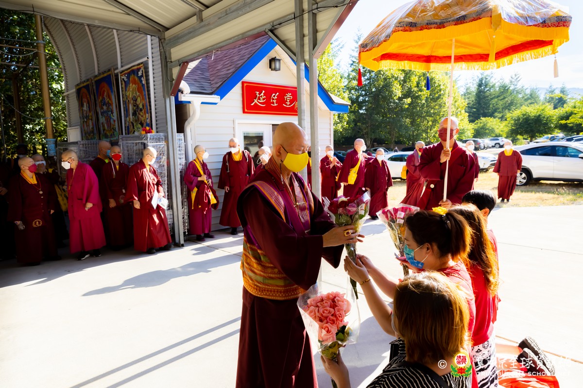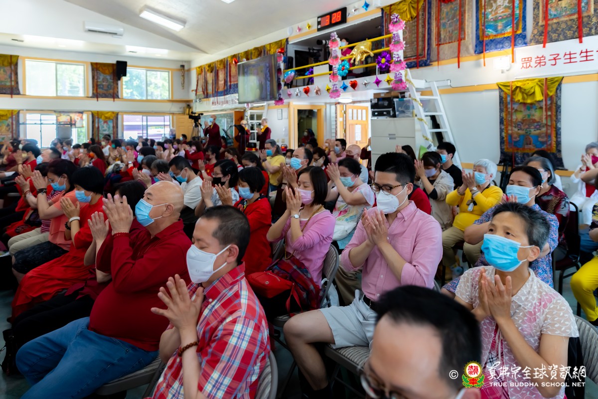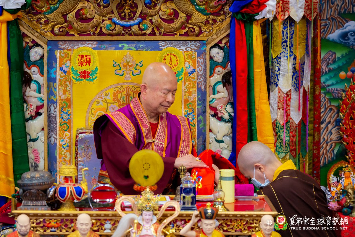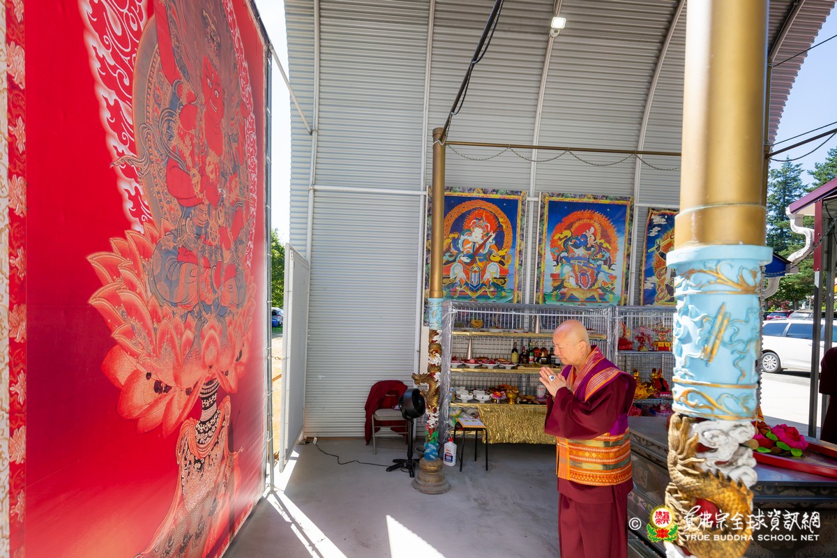 開示結束後,法王帶領大眾頂禮壇城,然後與Zoom雲端的弟子溫馨道別。接著,法王給現場與會大眾賜授「愛染明王法」灌頂,殊勝的愛染明王護摩法會在灌頂結束後也圓滿落幕。